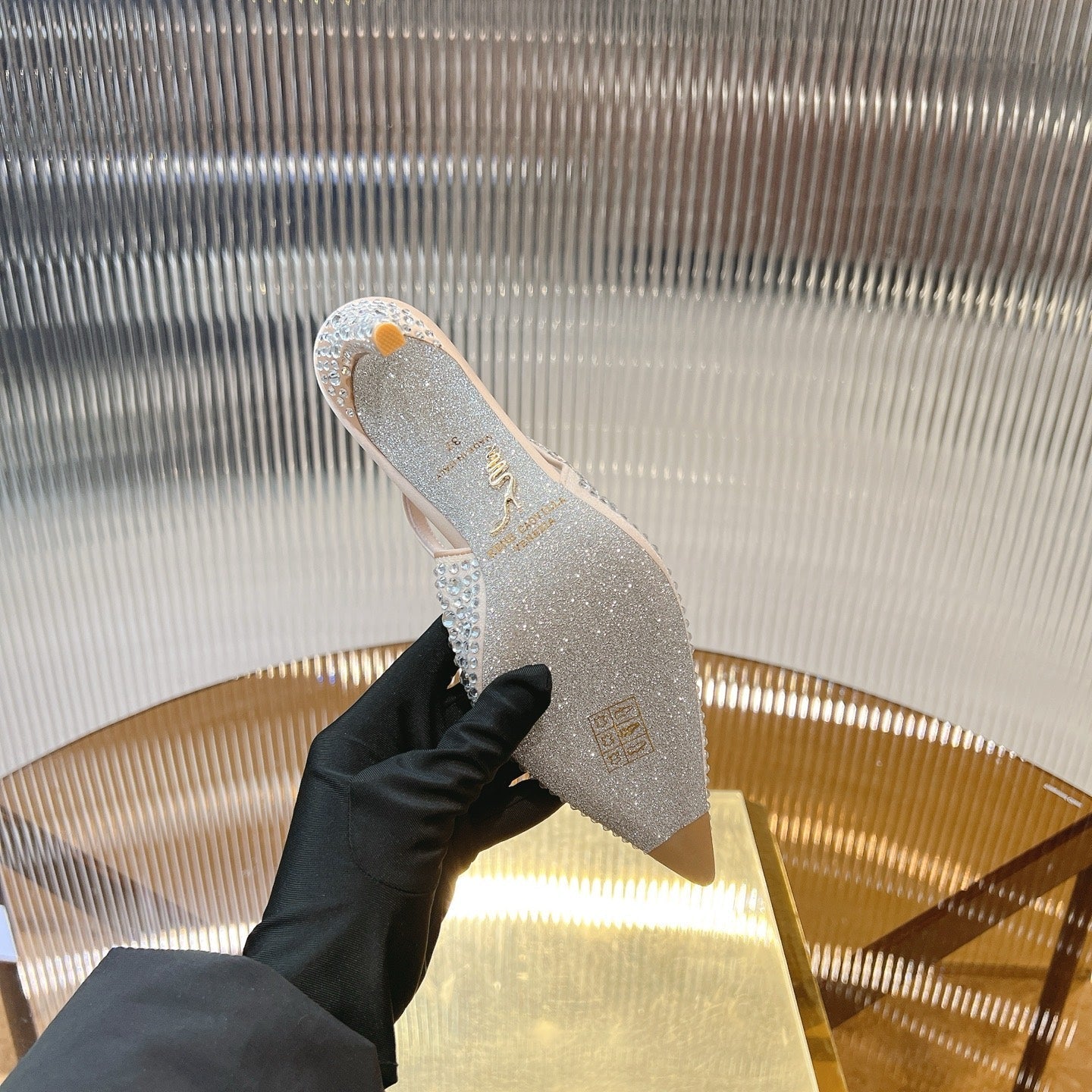 RC Slingback 1cm White Rhinestone Sheepskin 281983