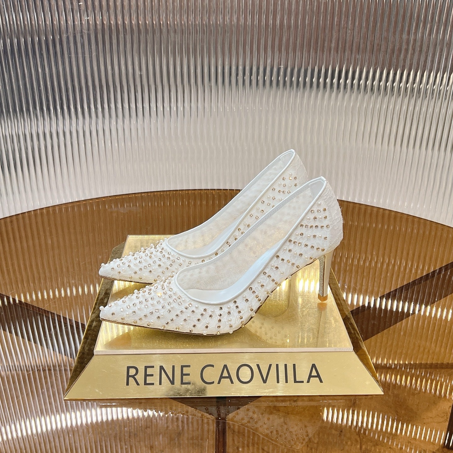 RC Scarpin Shoe 7.5cm White Rhinestone Sheepskin 281987