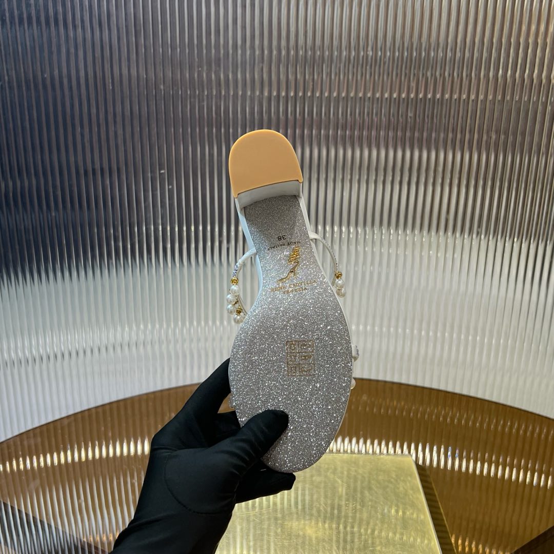 RC Gold Buckle Pearl Crystal Lamp Pendant Sandals 7.5 White Sheepskin 175000