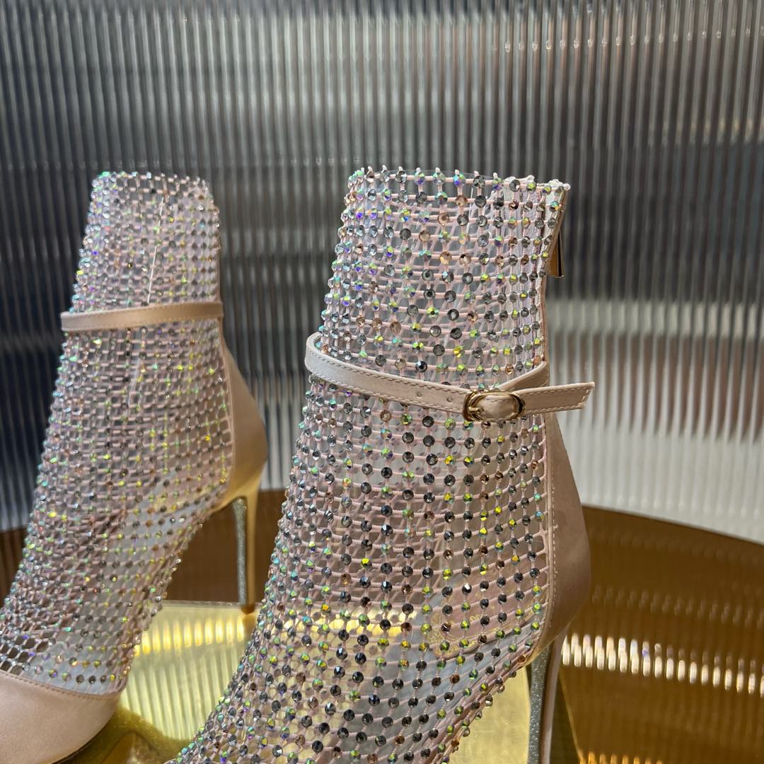 RC 25C High Heel Short Boots Mid-Tube Open-Toe Sandals Gold Sheepskin 174957