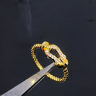 1. Using a length of string or ribbon, wrap it around the base of your finger. To ensure the ring fits comfortably, we suggest measuring your knuckle as well. We recommend selecting a size that will slide on and off your finger easily.