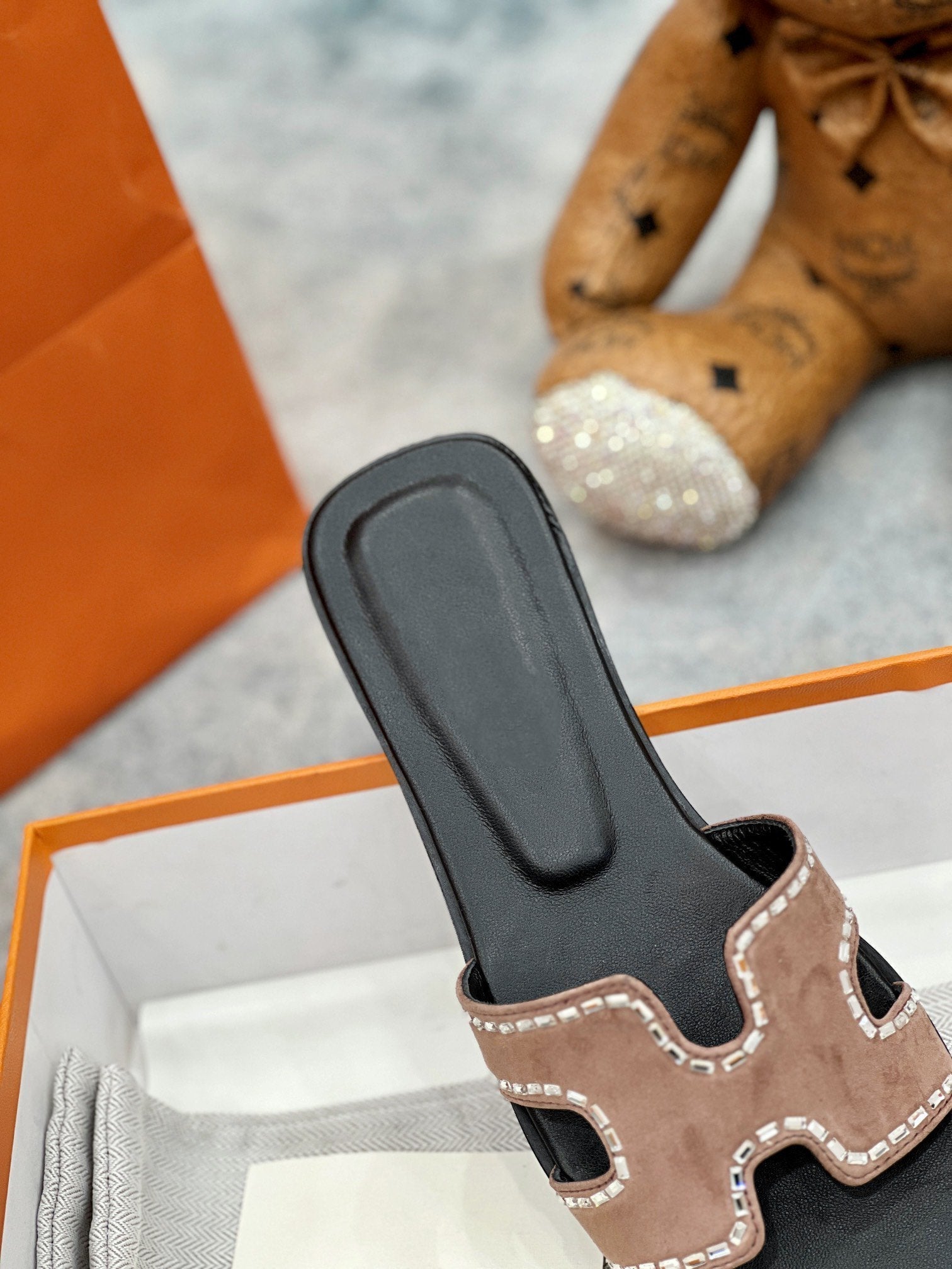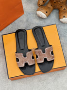 - Material: Sandal in calfskin with iconic "H" cut-out.