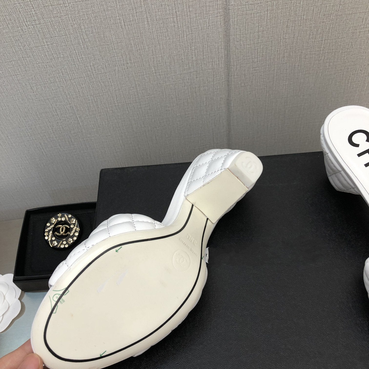 cc rev cone heel mule slide sandal white quilted lambskin 6cm
