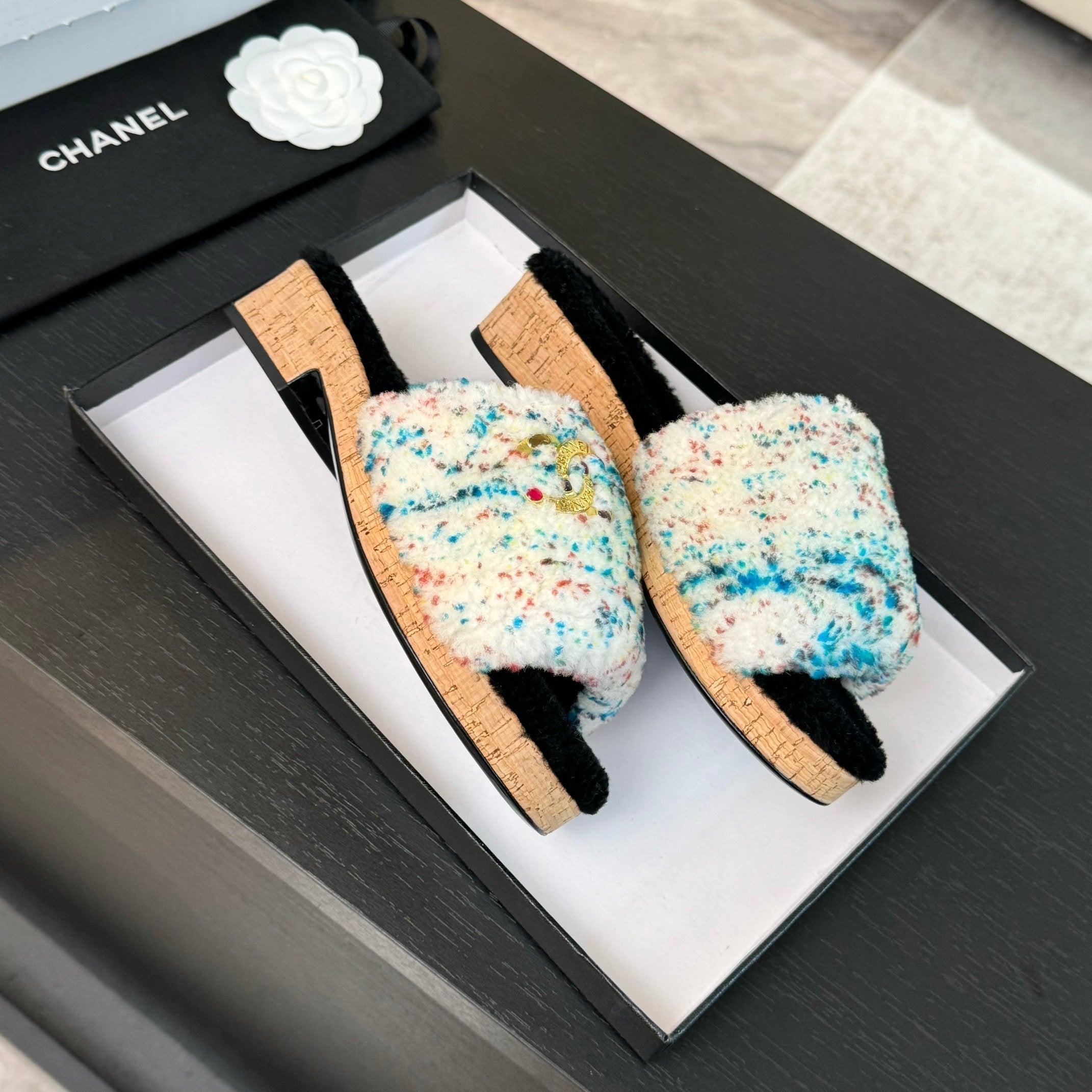 CC Slippers White Black Mix Blue Red Fleece Wool