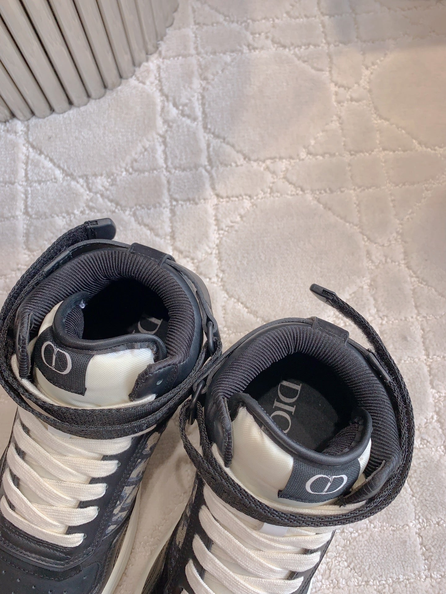 CD B27 High-Top Sneaker Black Charcoal Blue Print Calfskin And Oblique Jacquard Fabric