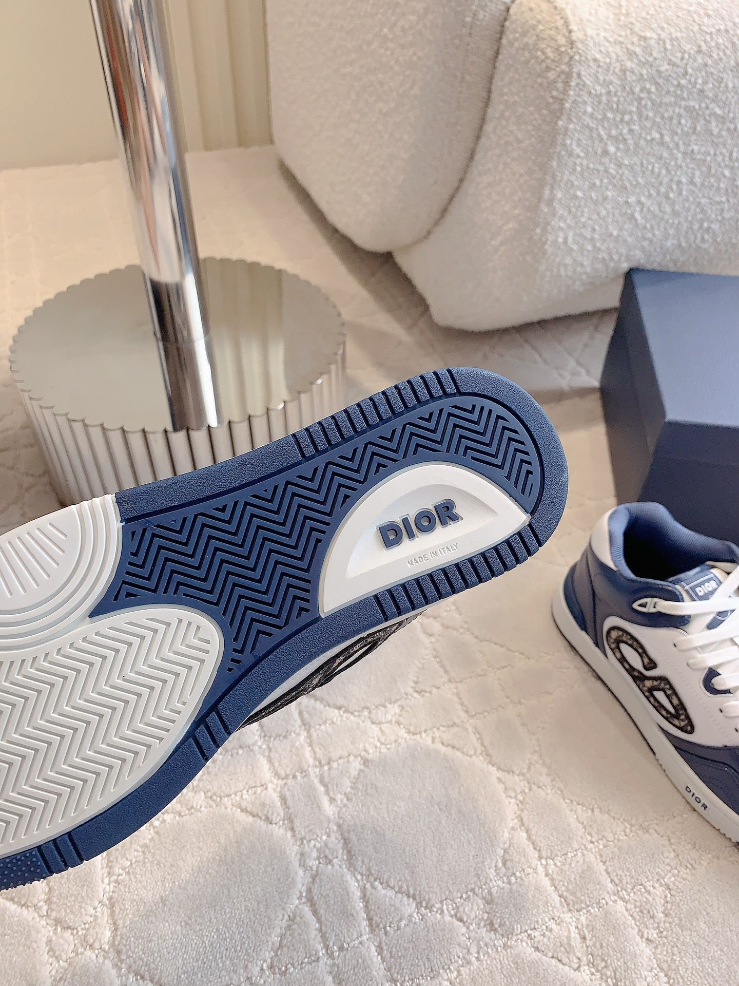 CD B57 Mid-Top Sneaker White Mix Dark Blue Calfskin And Oblique Jacquard