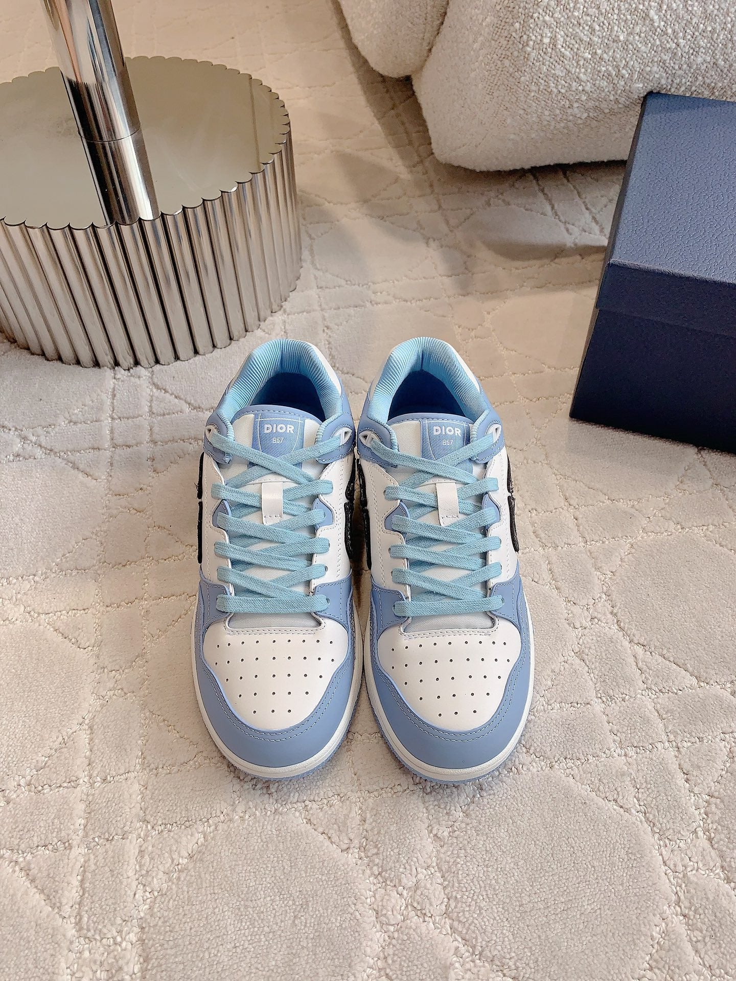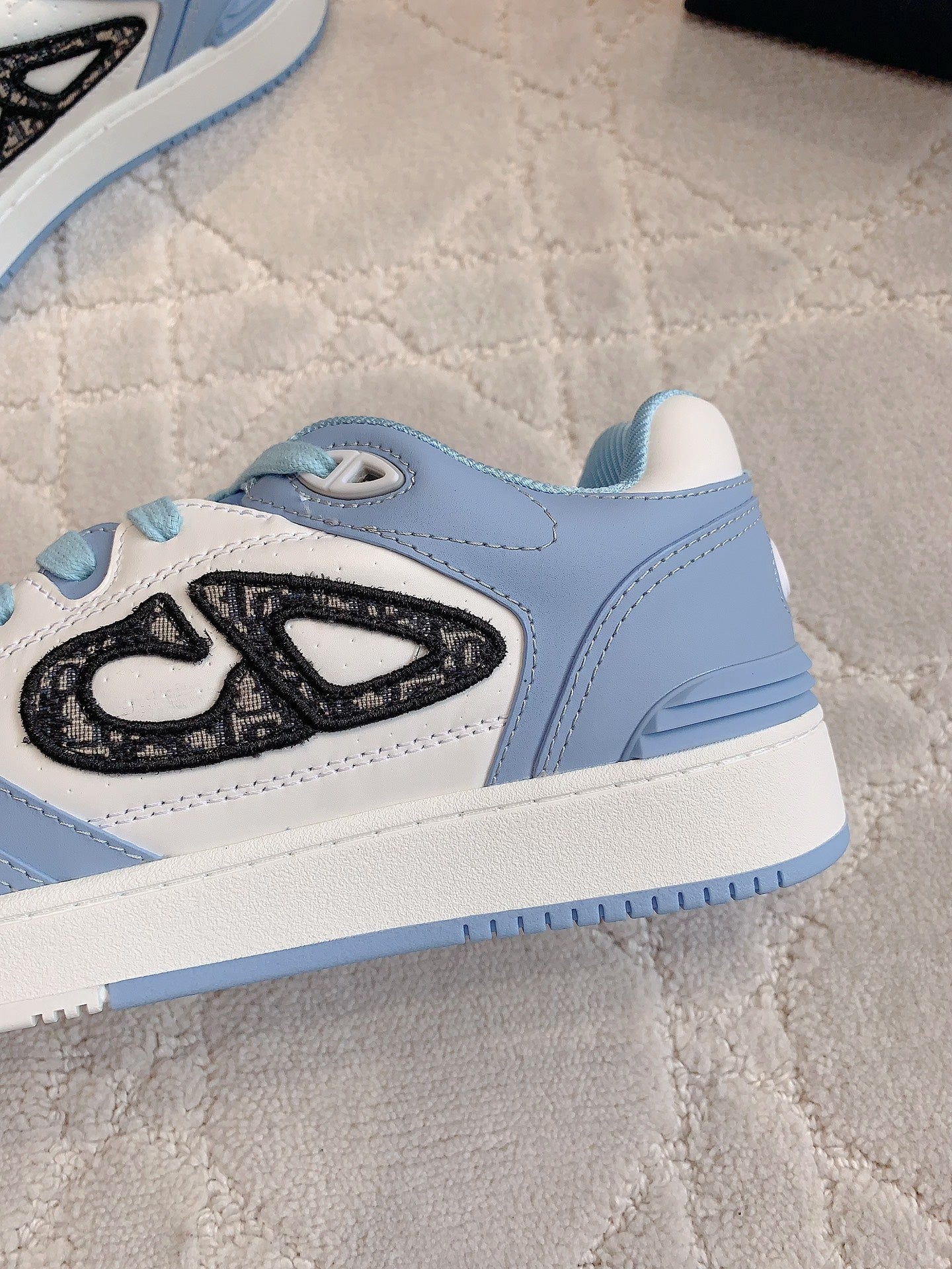 CD B57 Mid-Top Sneaker White Mix Light Blue Calfskin And Oblique Jacquard