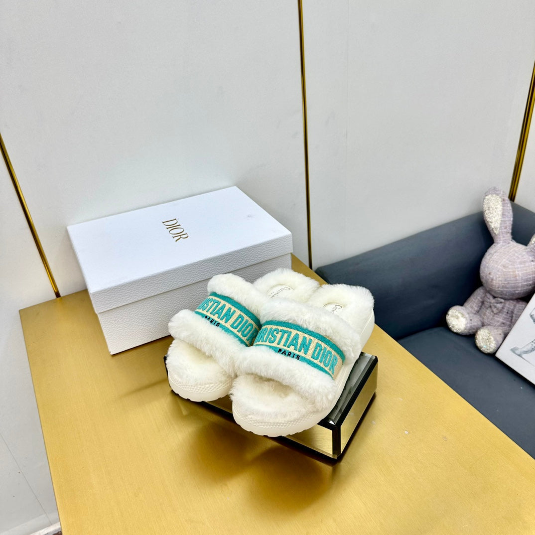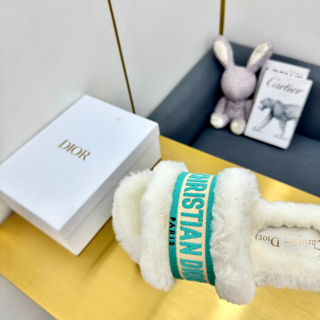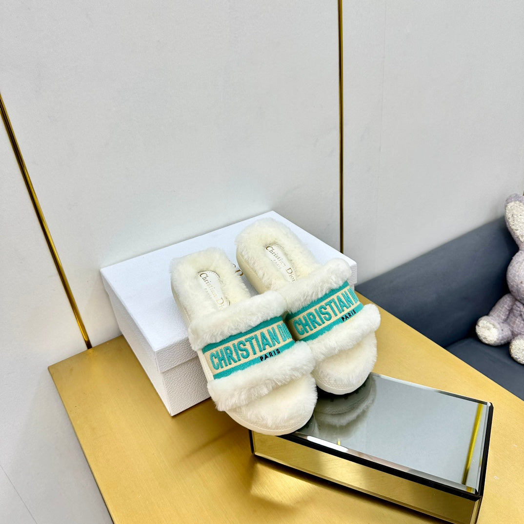 CD Dway Slide In White Mix Dark Jage Green Wool Fleece Lining And Canvas Fabric 111081