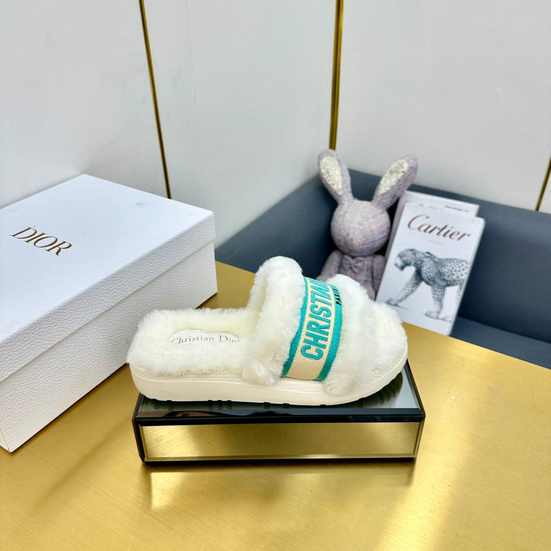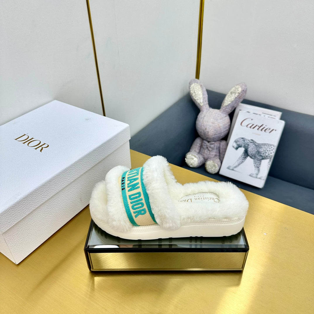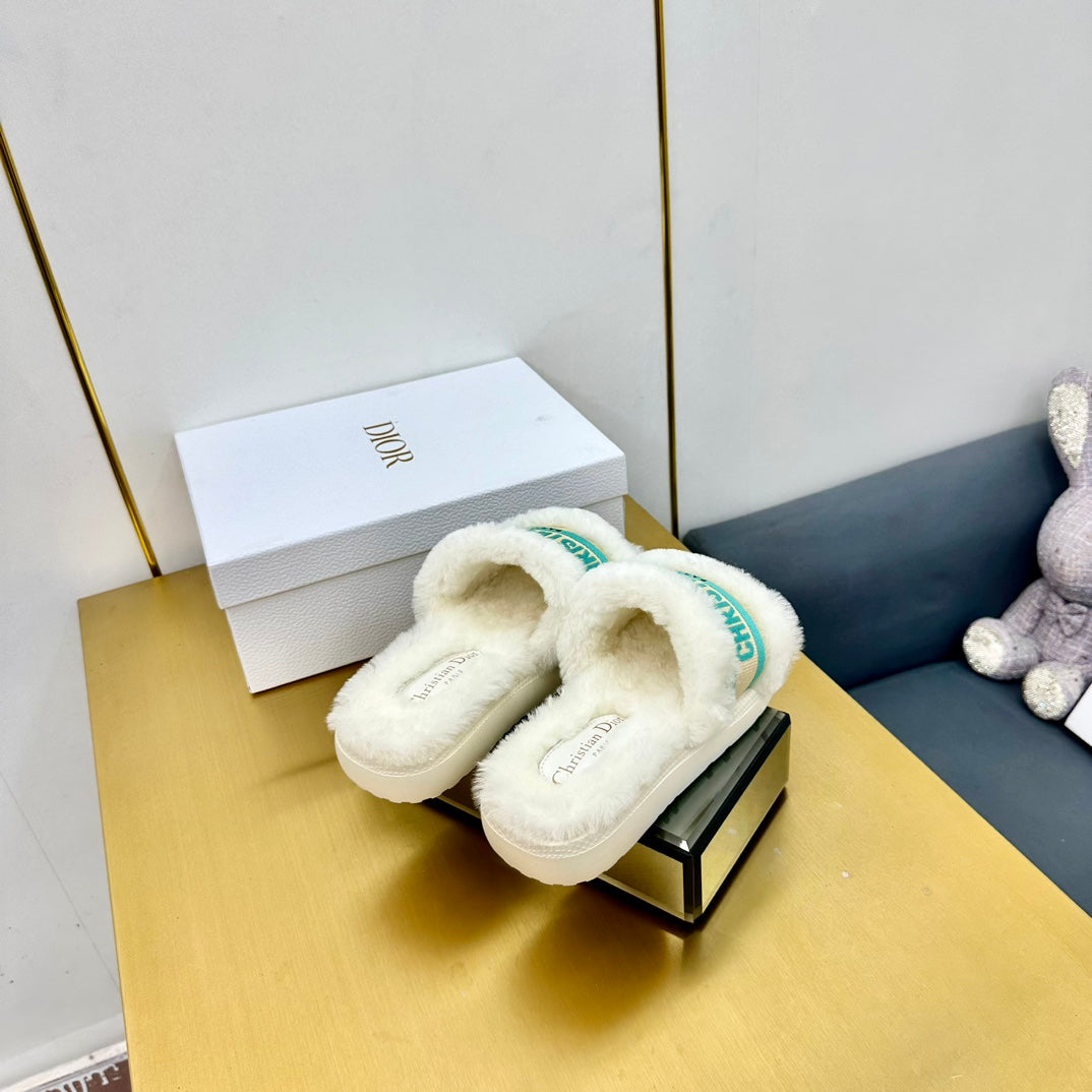 CD Dway Slide In White Mix Dark Jage Green Wool Fleece Lining And Canvas Fabric 111081