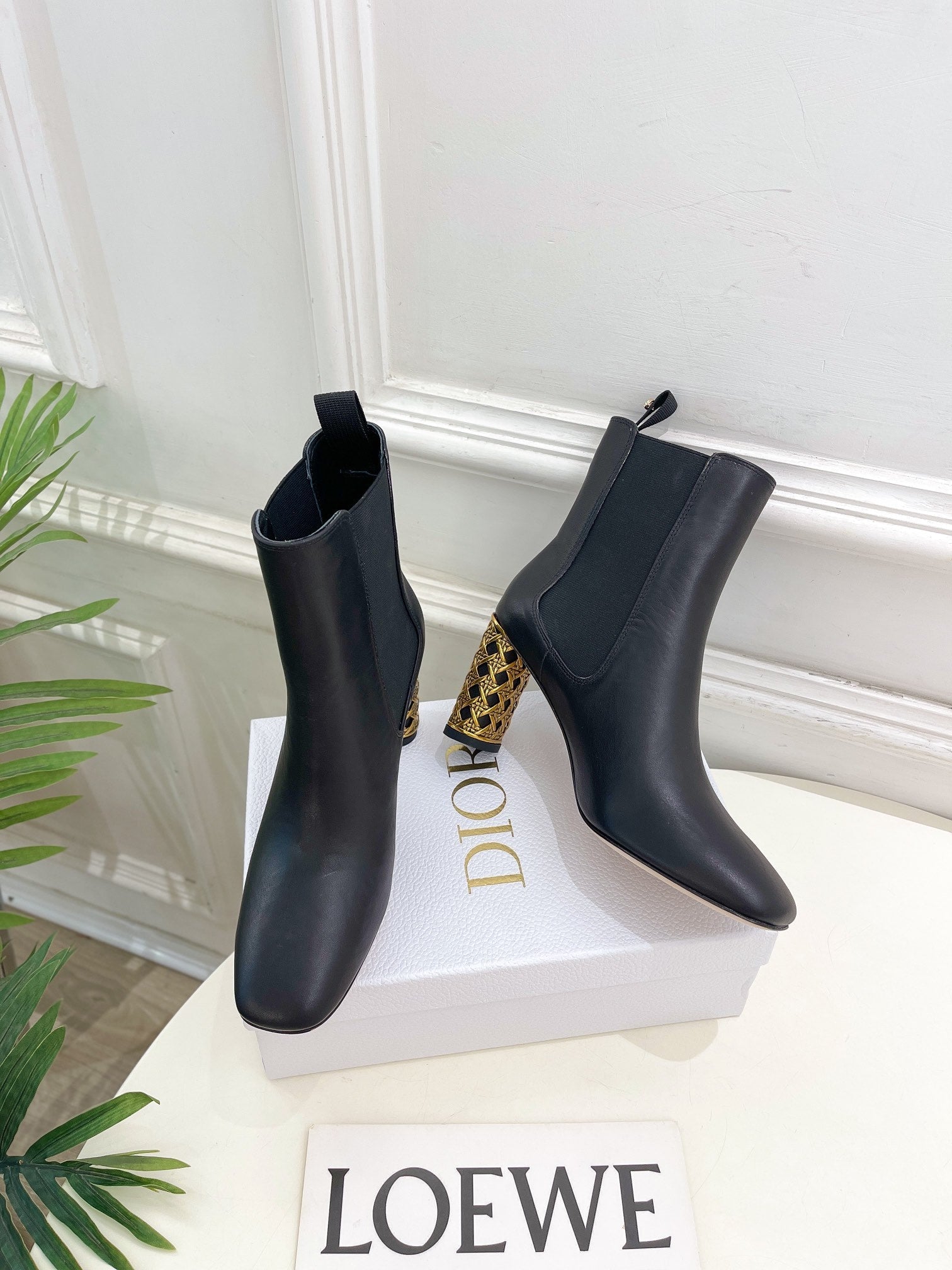 CD Icon Heeled Ankle Boot 80mm Black Calfskin