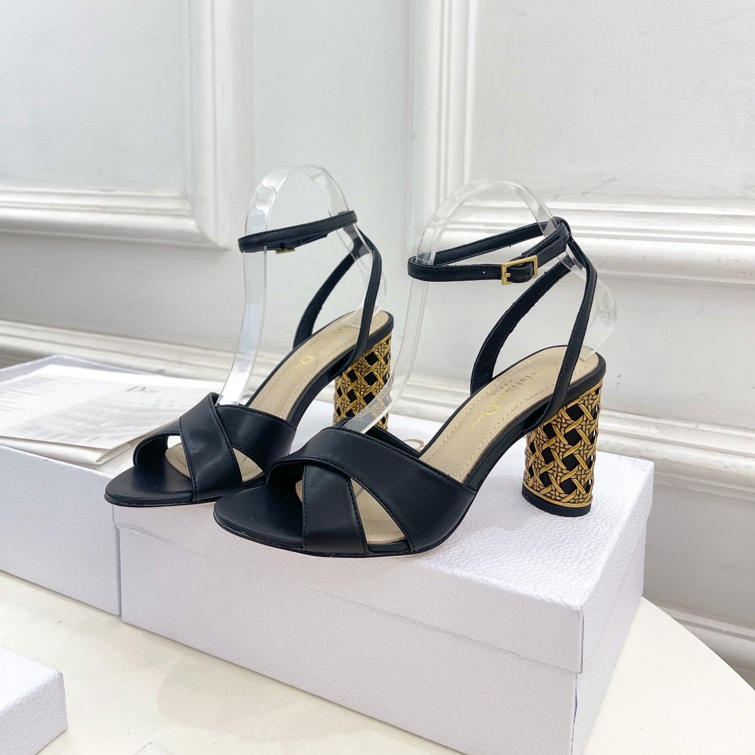 CD Icon Heeled Sandal 80mm Black Calfskin