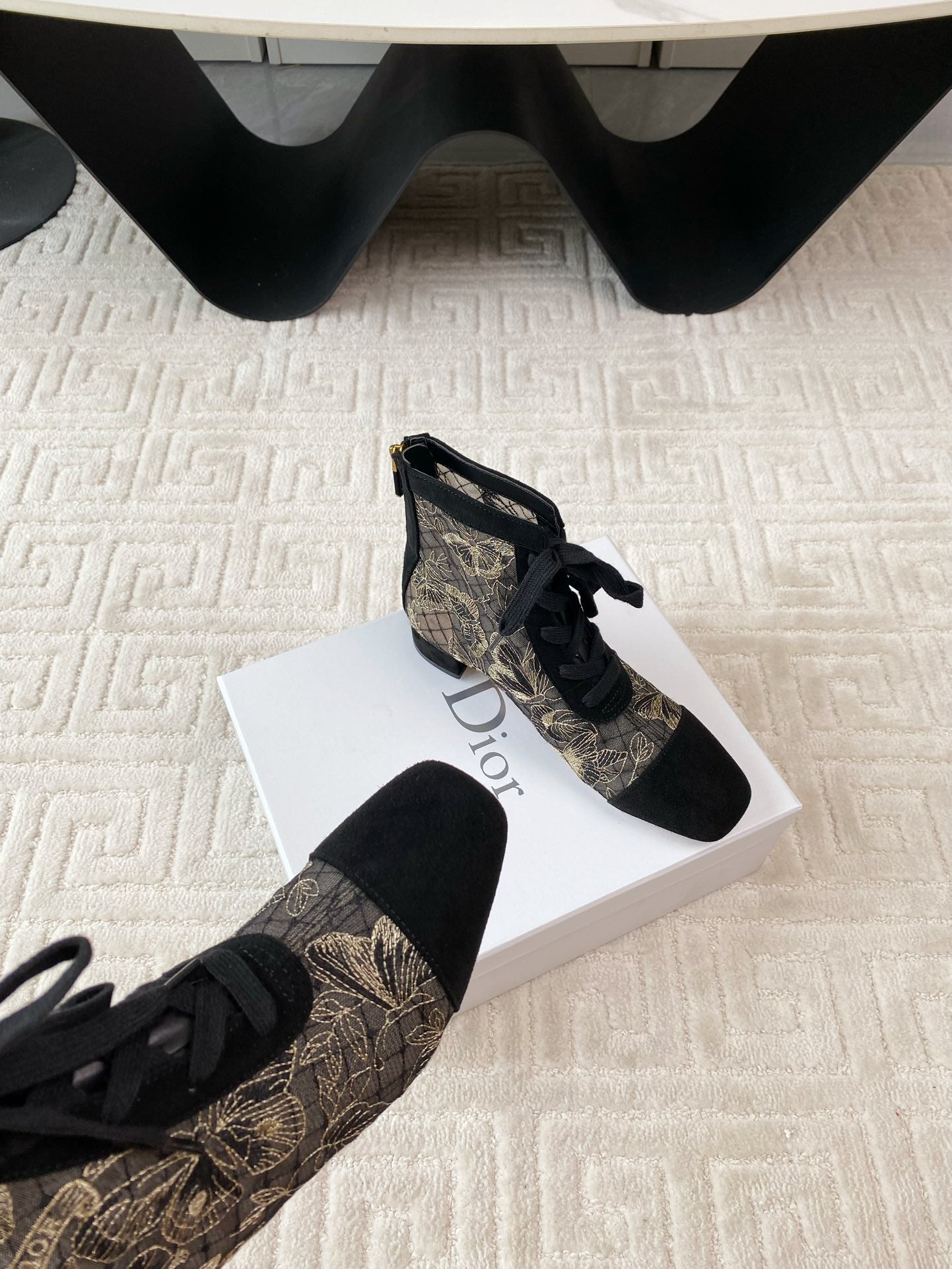 CD Naughtily-D Heeled Ankle Boot Black Transparent Mesh Butterfly And Suede