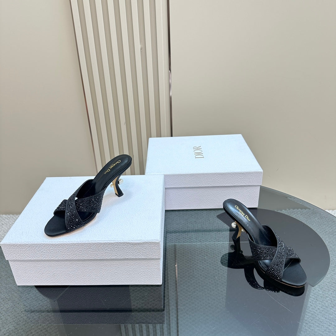CD Tribales Heeled Slide 80mm Black Lambskin And Studded With Stones
