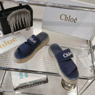 CHLOÉ MILA PLATFORM 5 CM IN NAVY BLUE FABRIC AND BEIGE RAFFIA