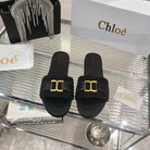 CHLOÉ WOVEN SLIPPER IN BLACK WOOL AND LAMBSKIN GOLD HARDWARE