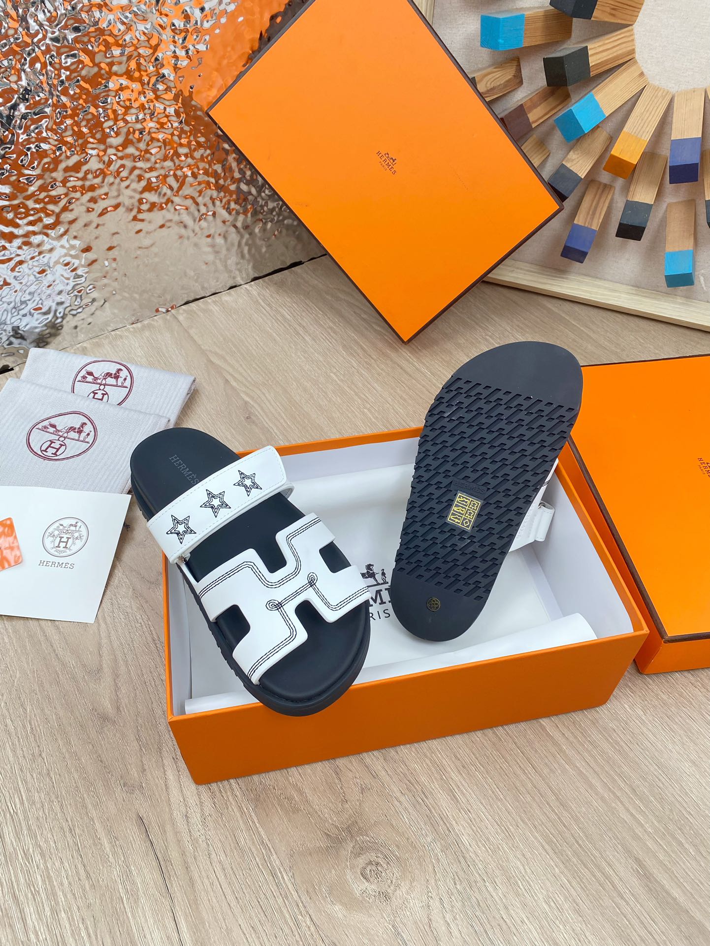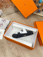 chypre sandal white black calfskin black thread embroidered