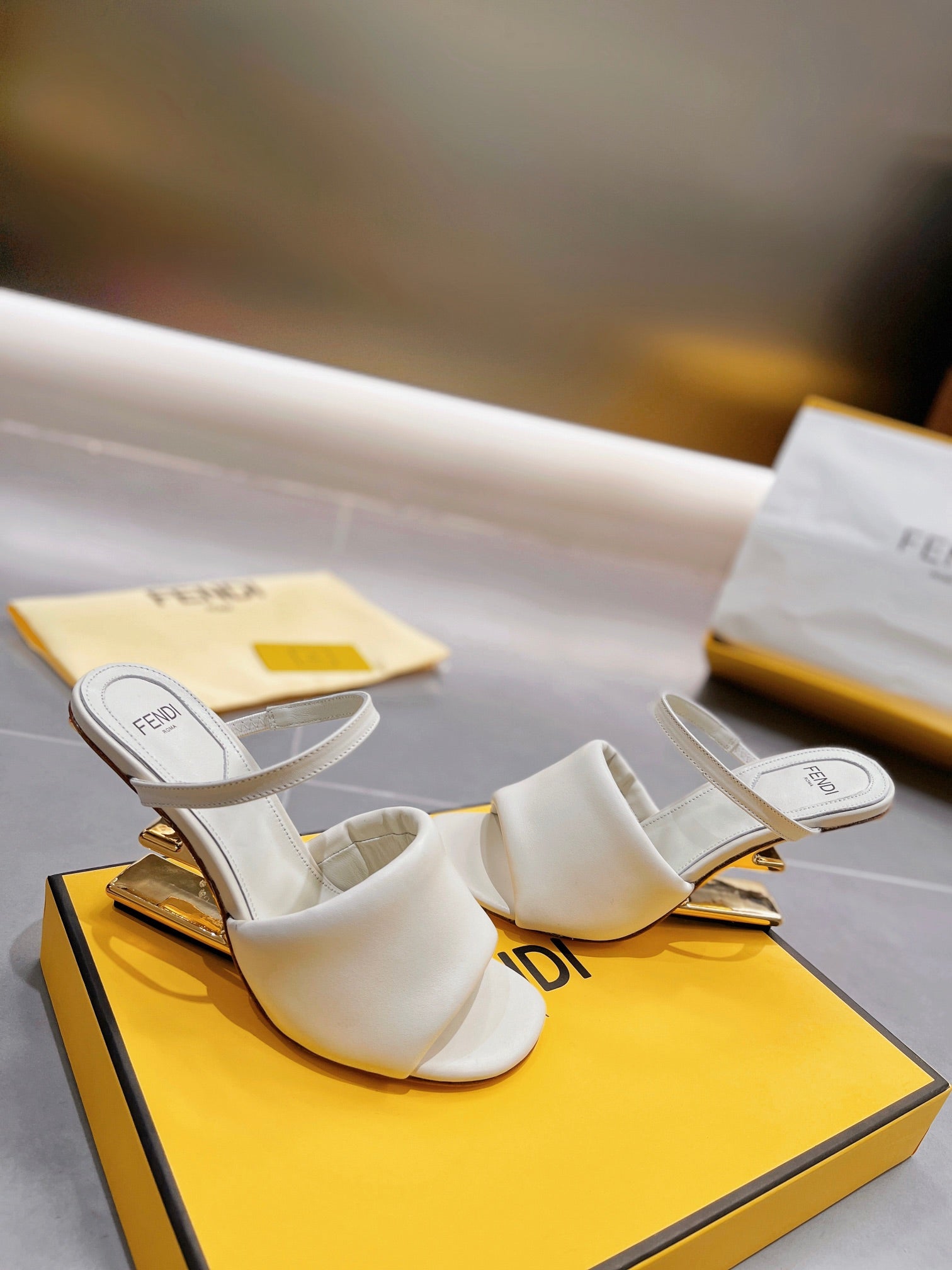 FENDI BAGUETTE HIGH-HEEL SANDALS 8 CM IN WHITE CALFSKIN