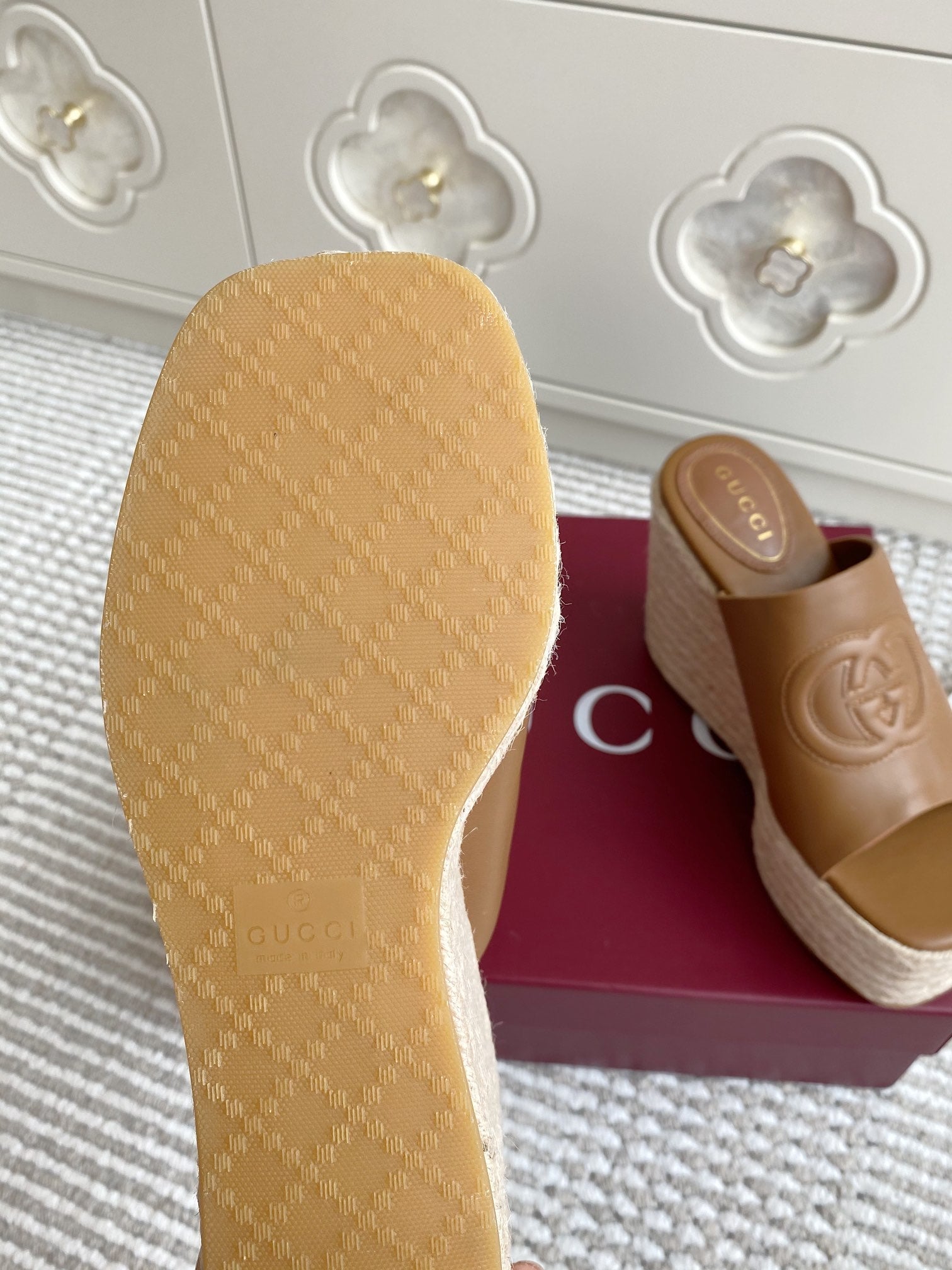 GC 25 Interlocking G Sandal Brown Cord Cowhide 291035