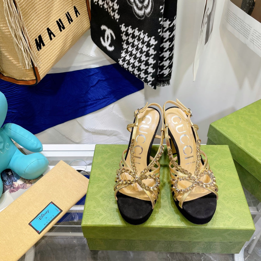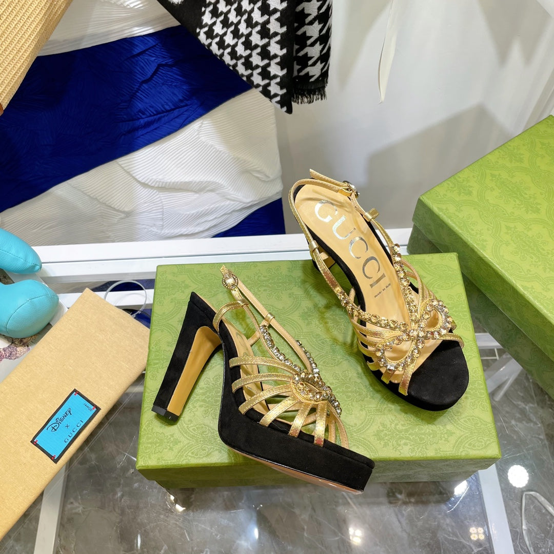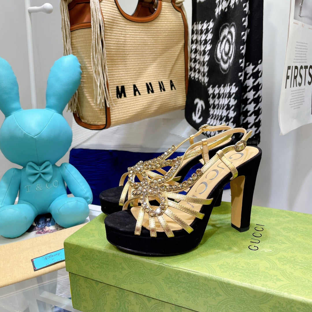 GG CRYSTAL HIGH HEEL SANDAL BLACK LAMBSKIN