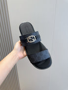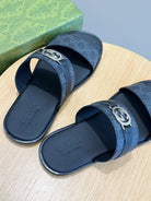 GG Men's Interlocking G Sandals Black Cowhide 547646