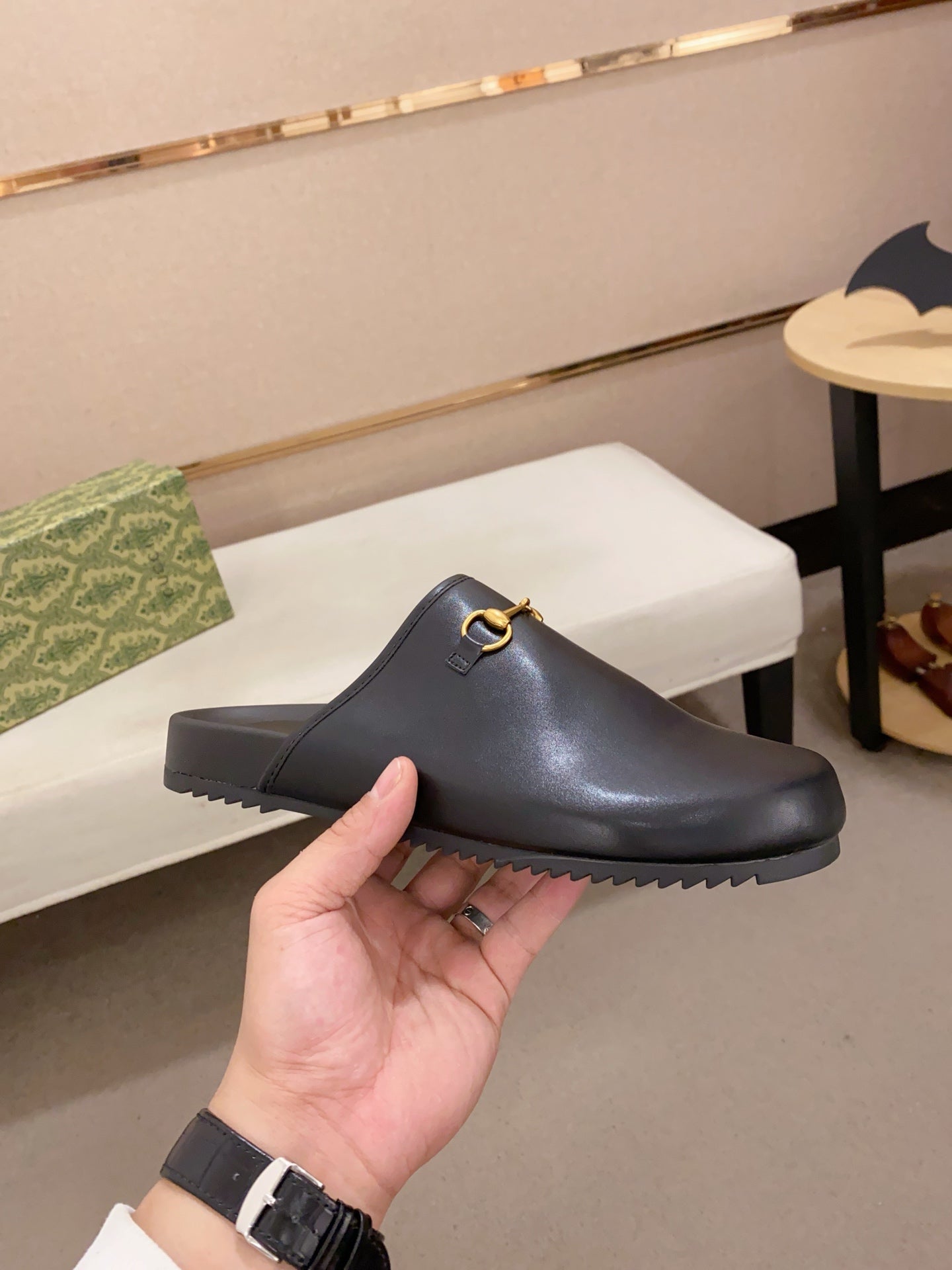 GG Men's Mule Black Cowhide 560362
