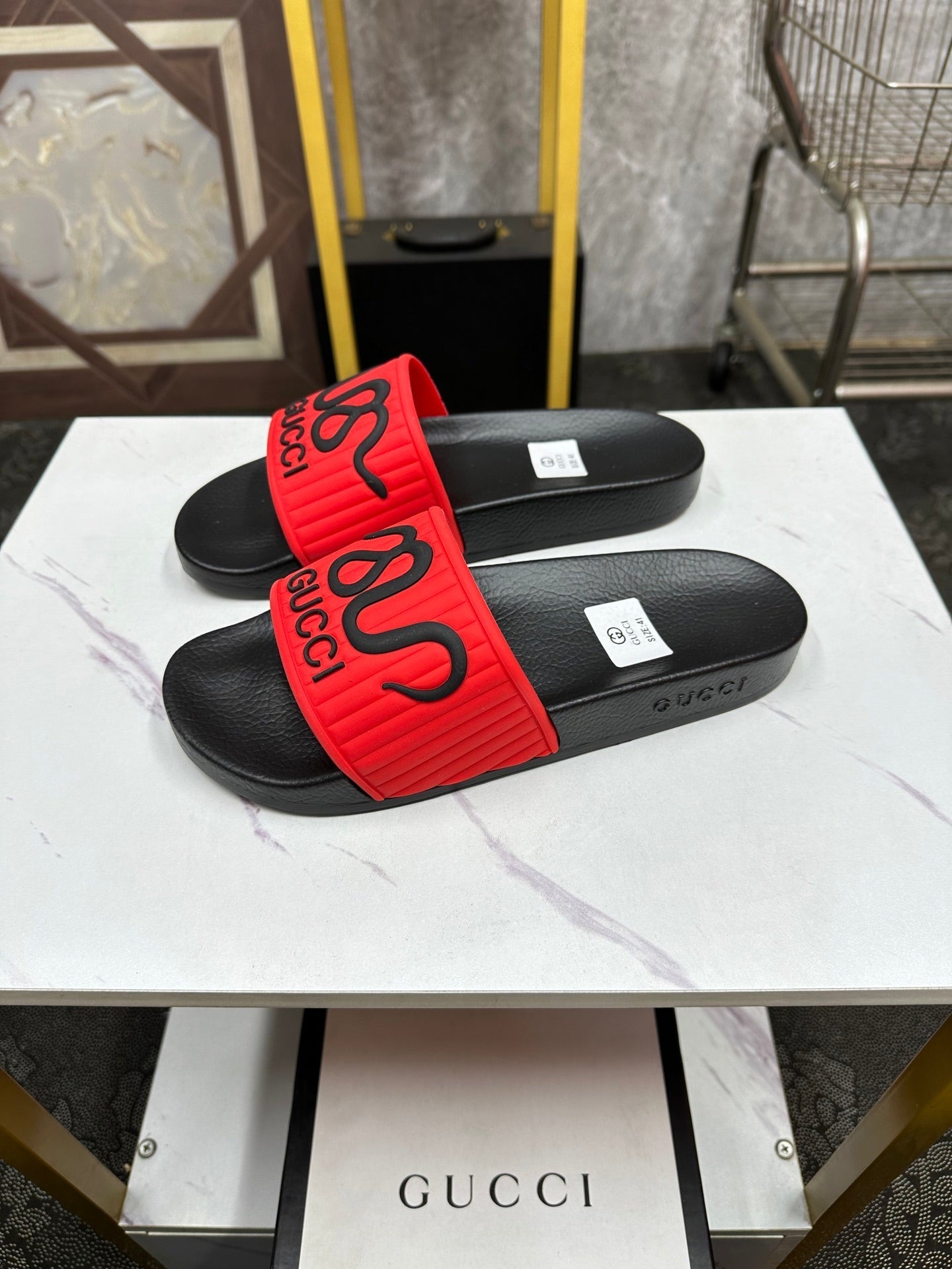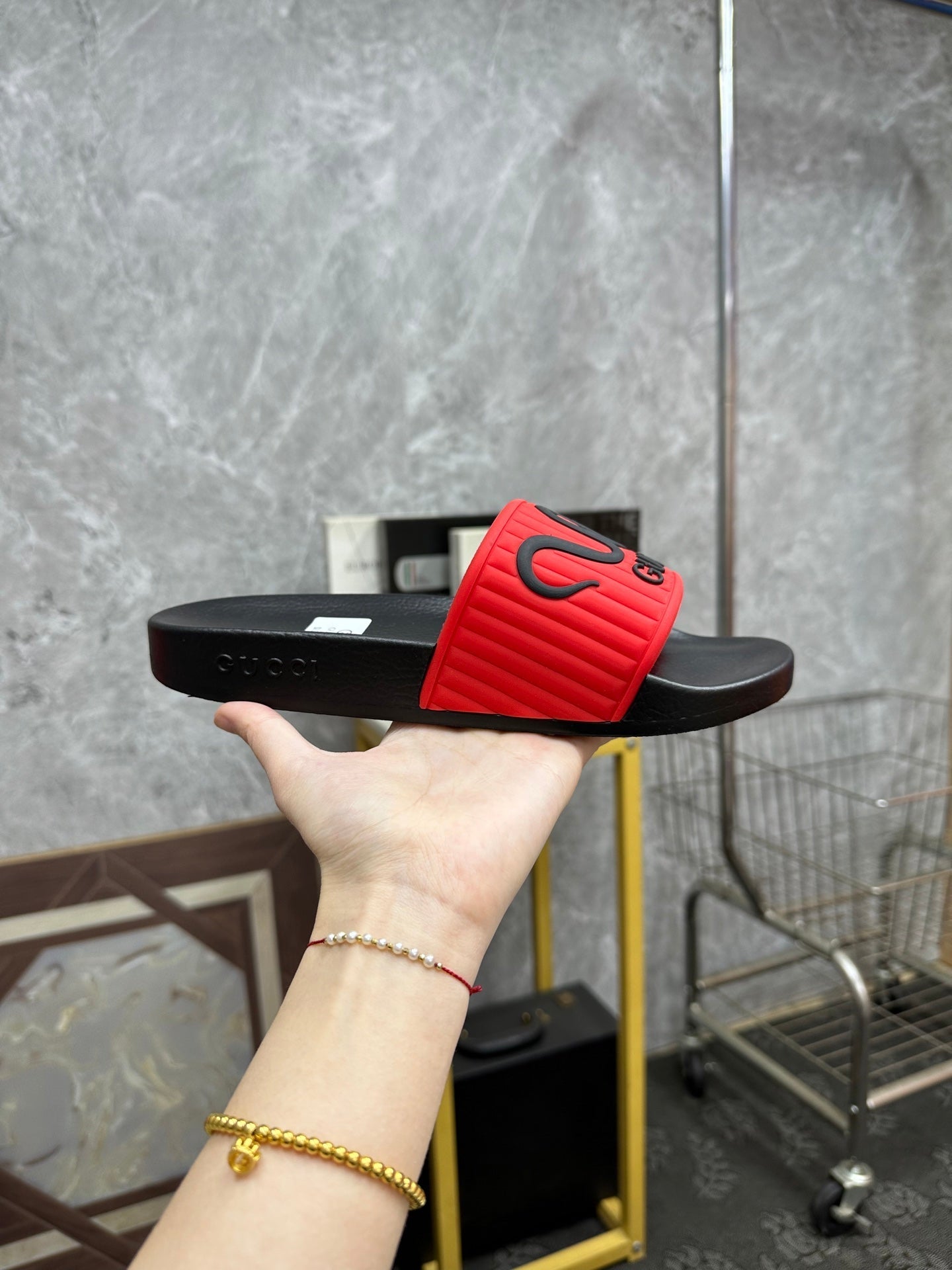 GG Men's Slide Red Sheepskin Rubber 540094