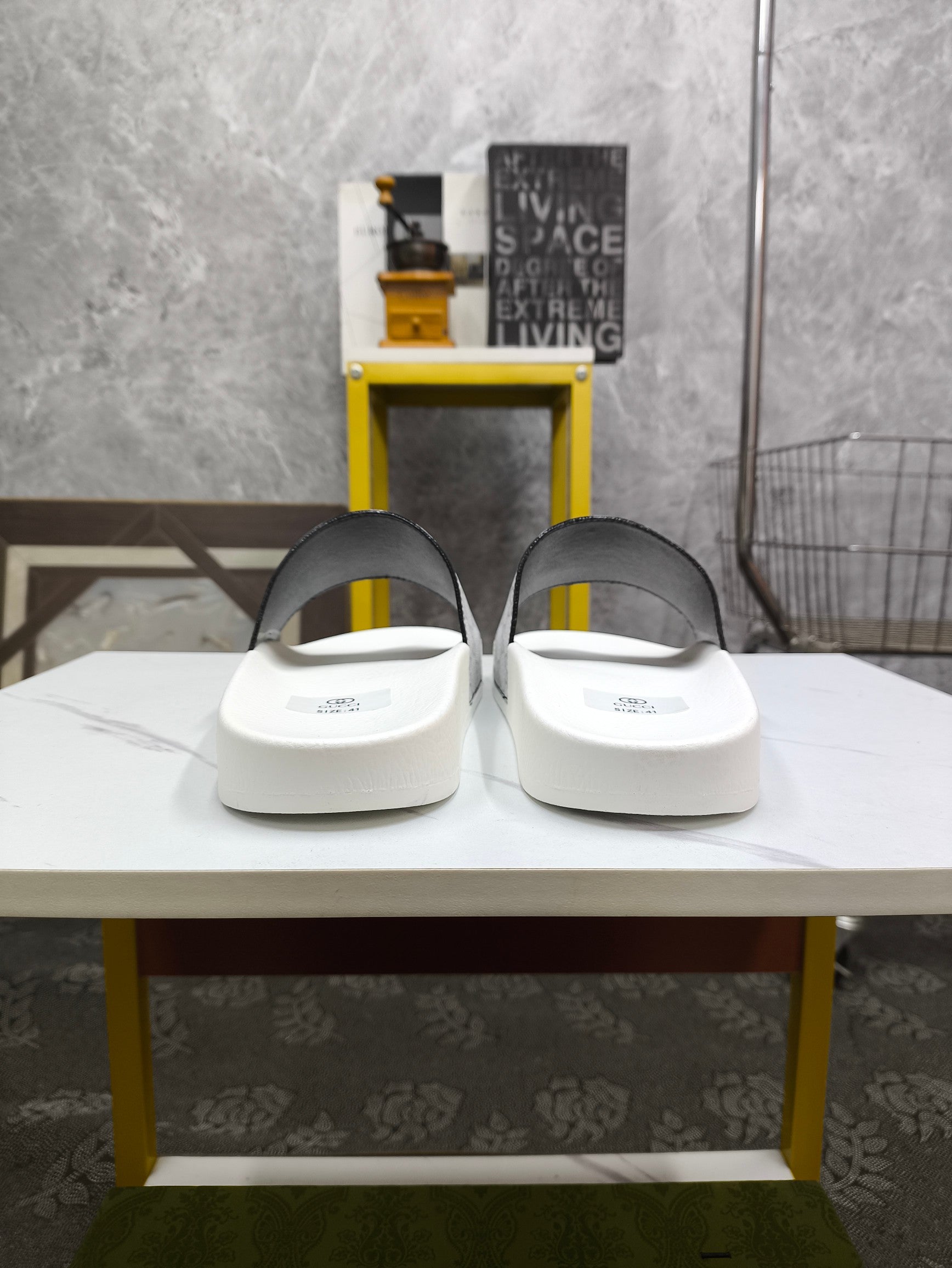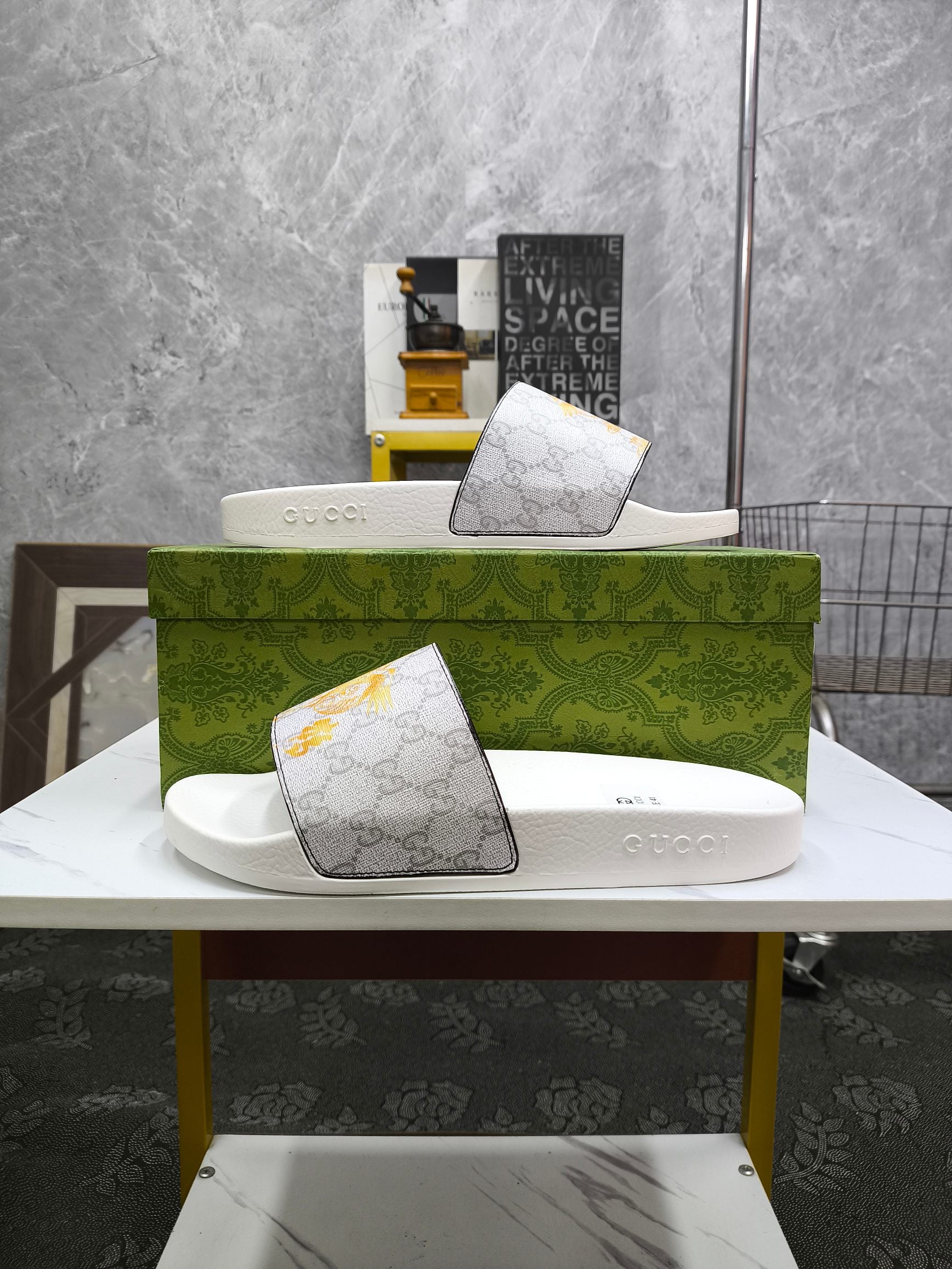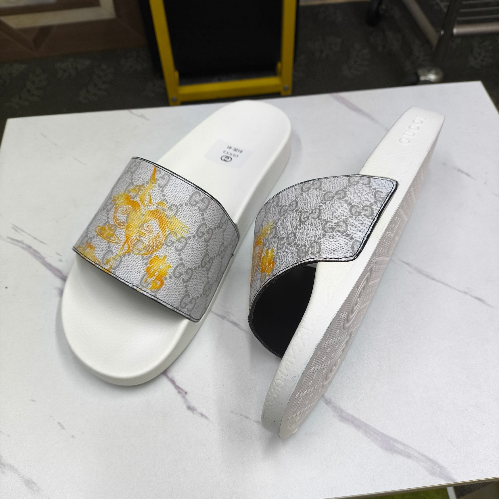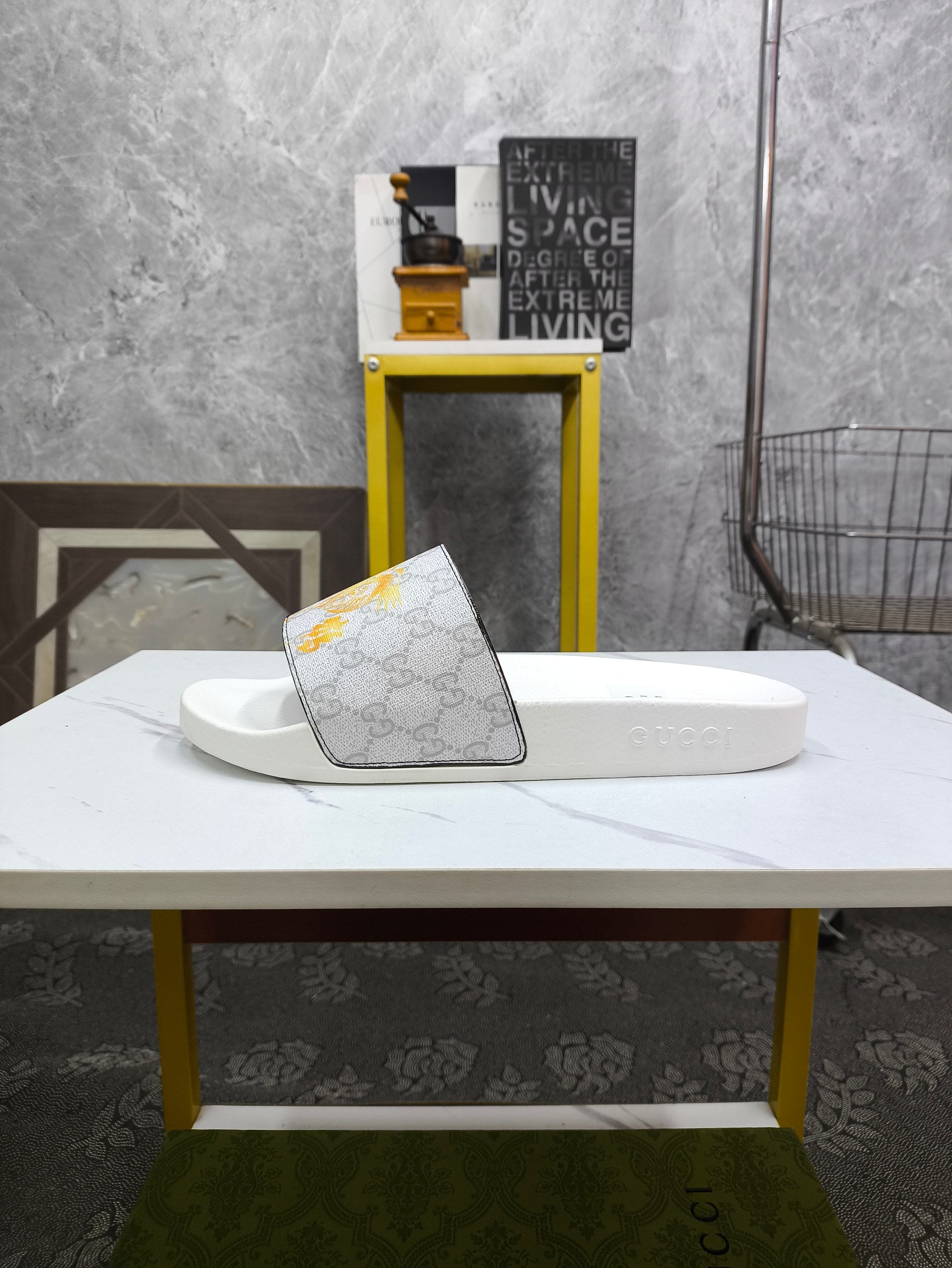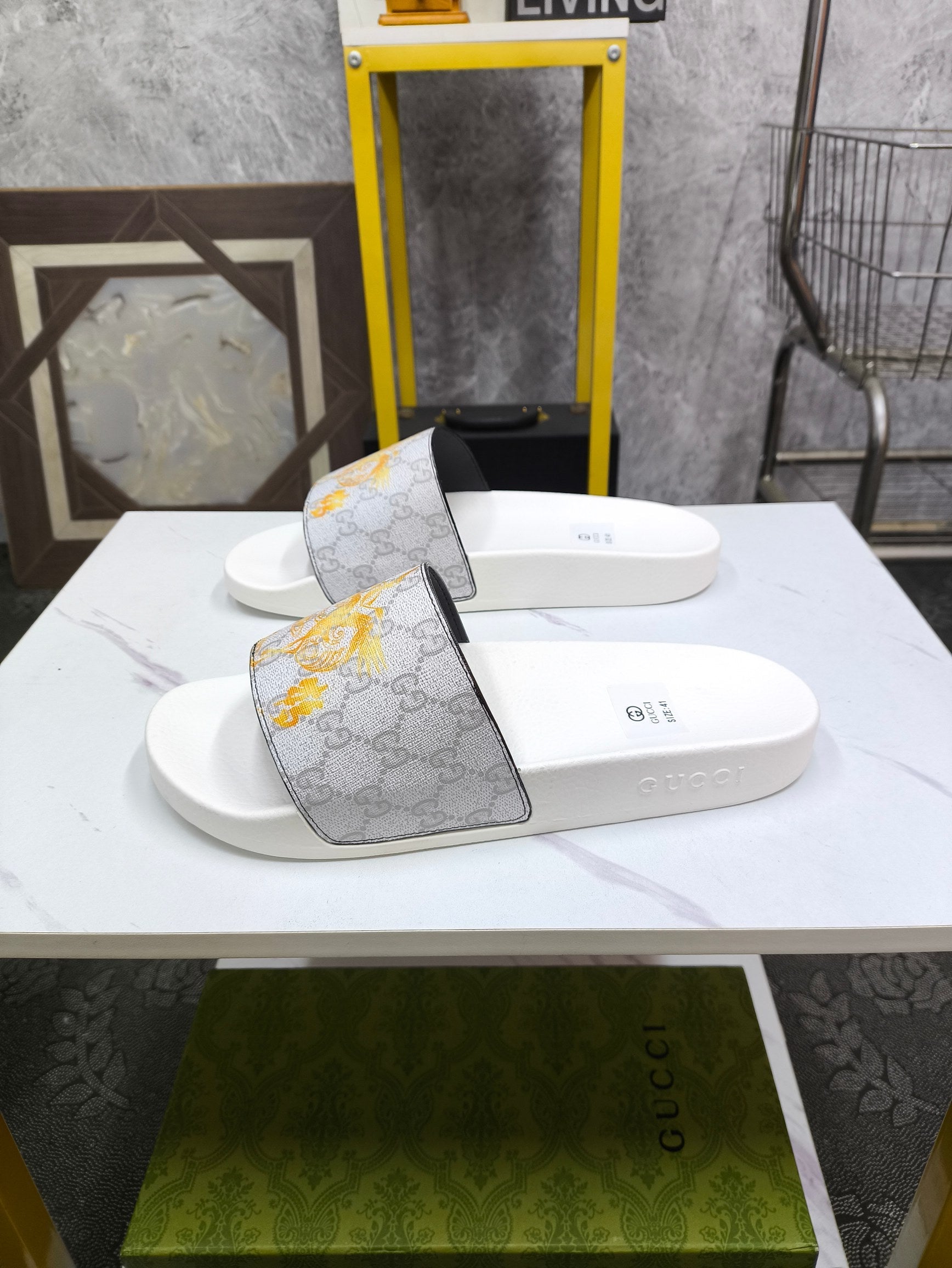 GG Men's Slide White Grey Sheepskin 535388