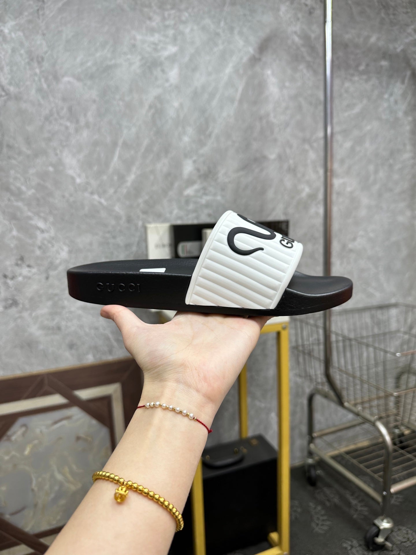 GG Men's Slide White Sheepskin Rubber 540097