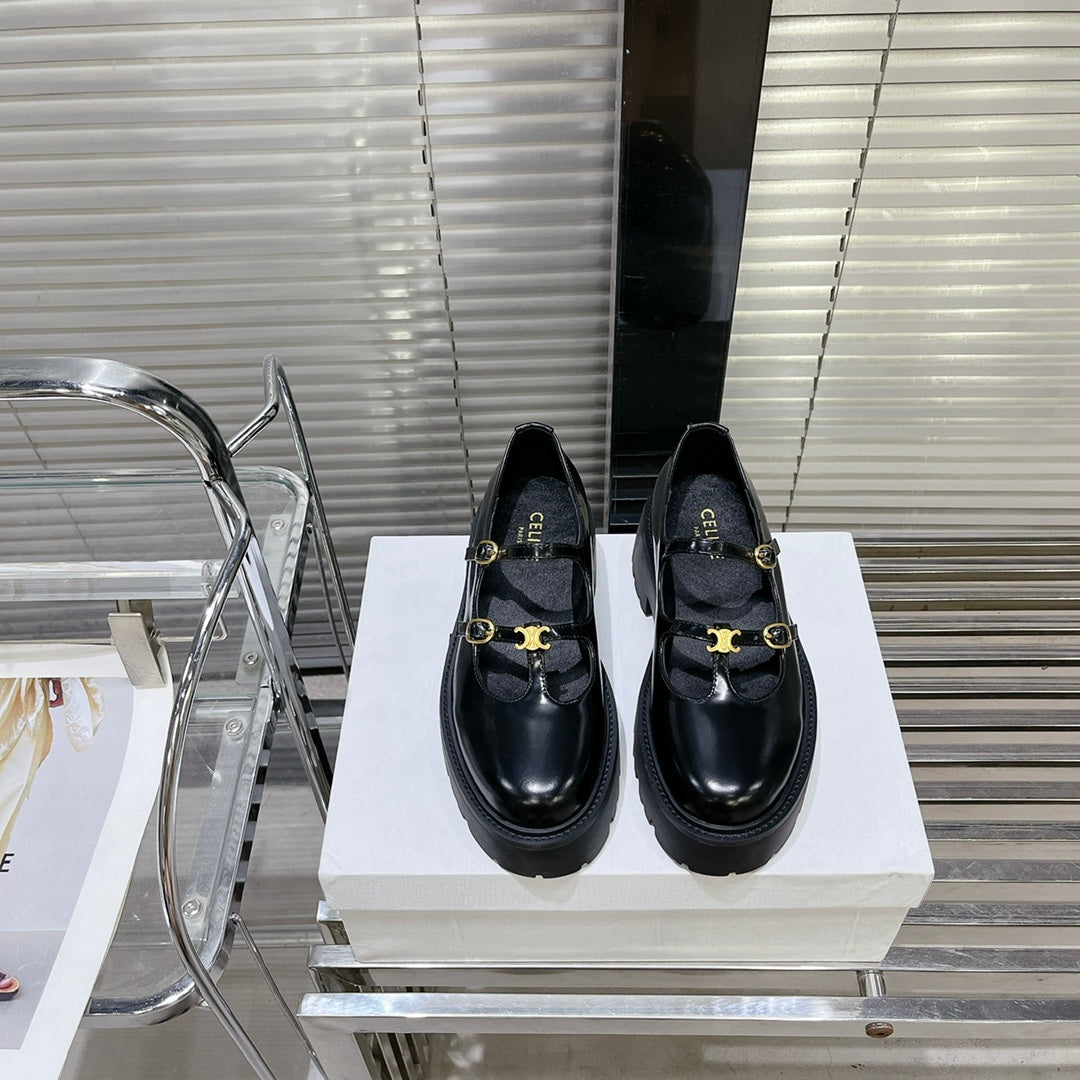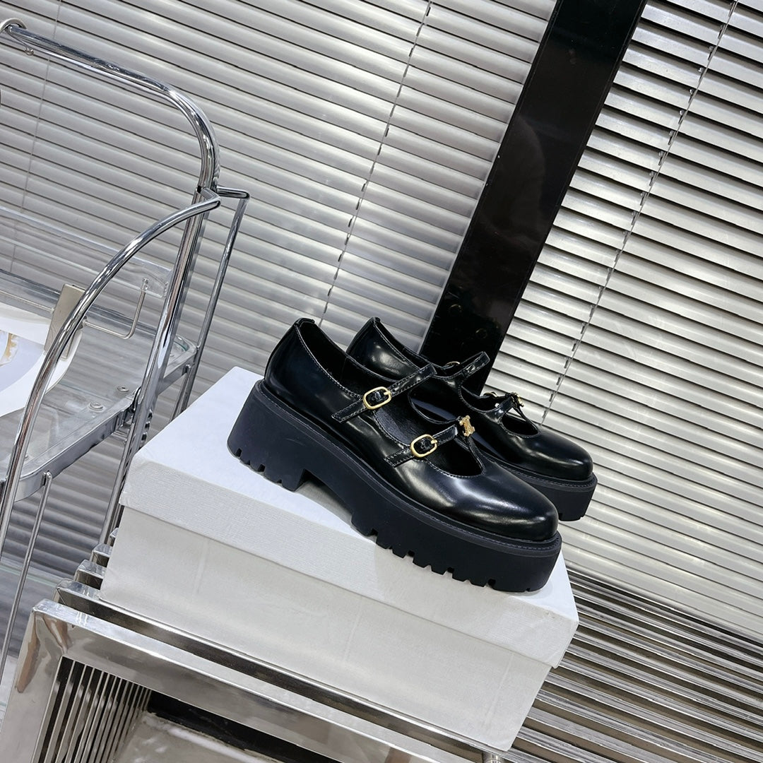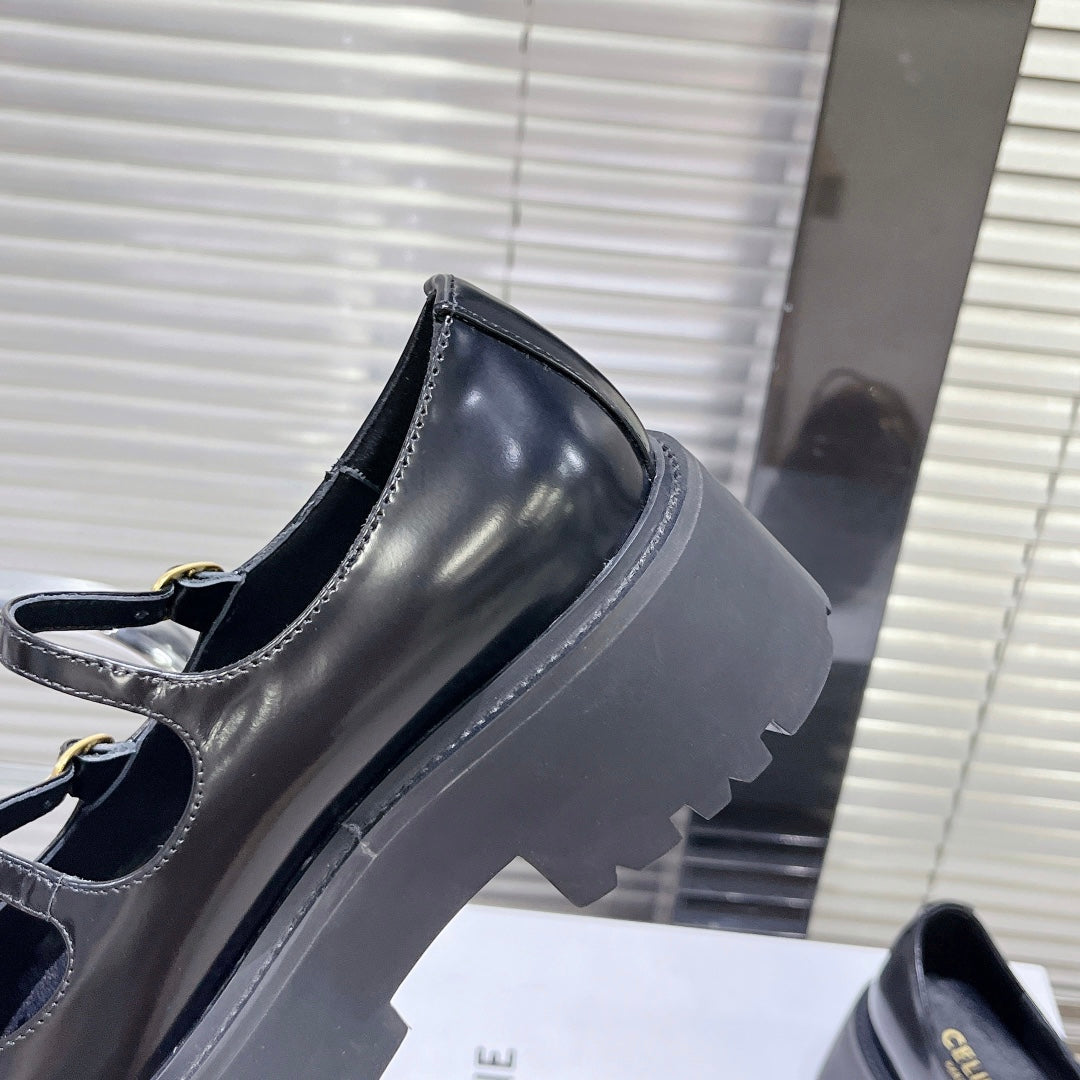 HIGH FLAT SANDALS WITH DOUBLE STRAP-DESIGN LEATHER BLACK