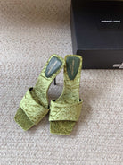 HIGH HEEL SLIDES IN TEA GREEN VELVET