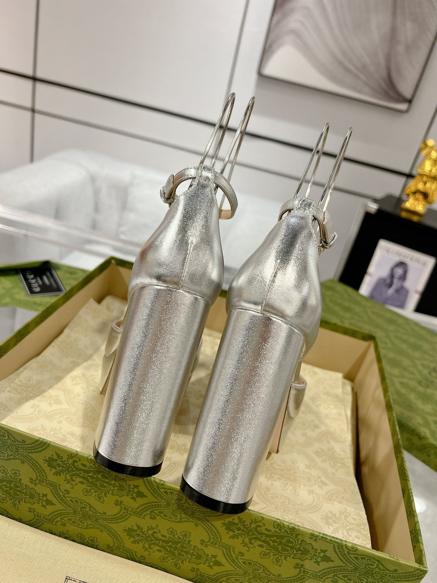 HIGH SANDAL SQUARE HEEL 12 CM IN SILVER CALFSKIN