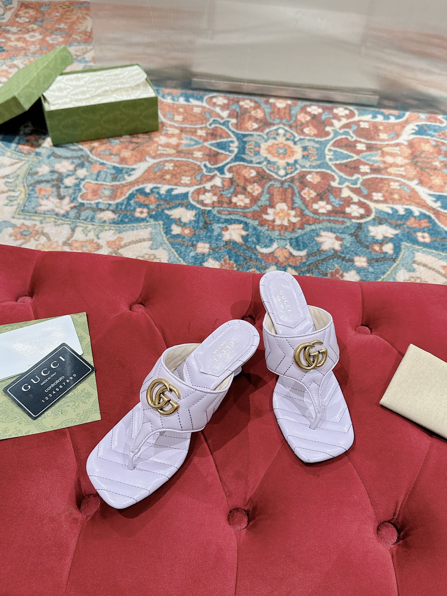 HIGH THONG MULE 55MM IN LIGHT PINK CALFSKIN WITH GOLD HARDWARE