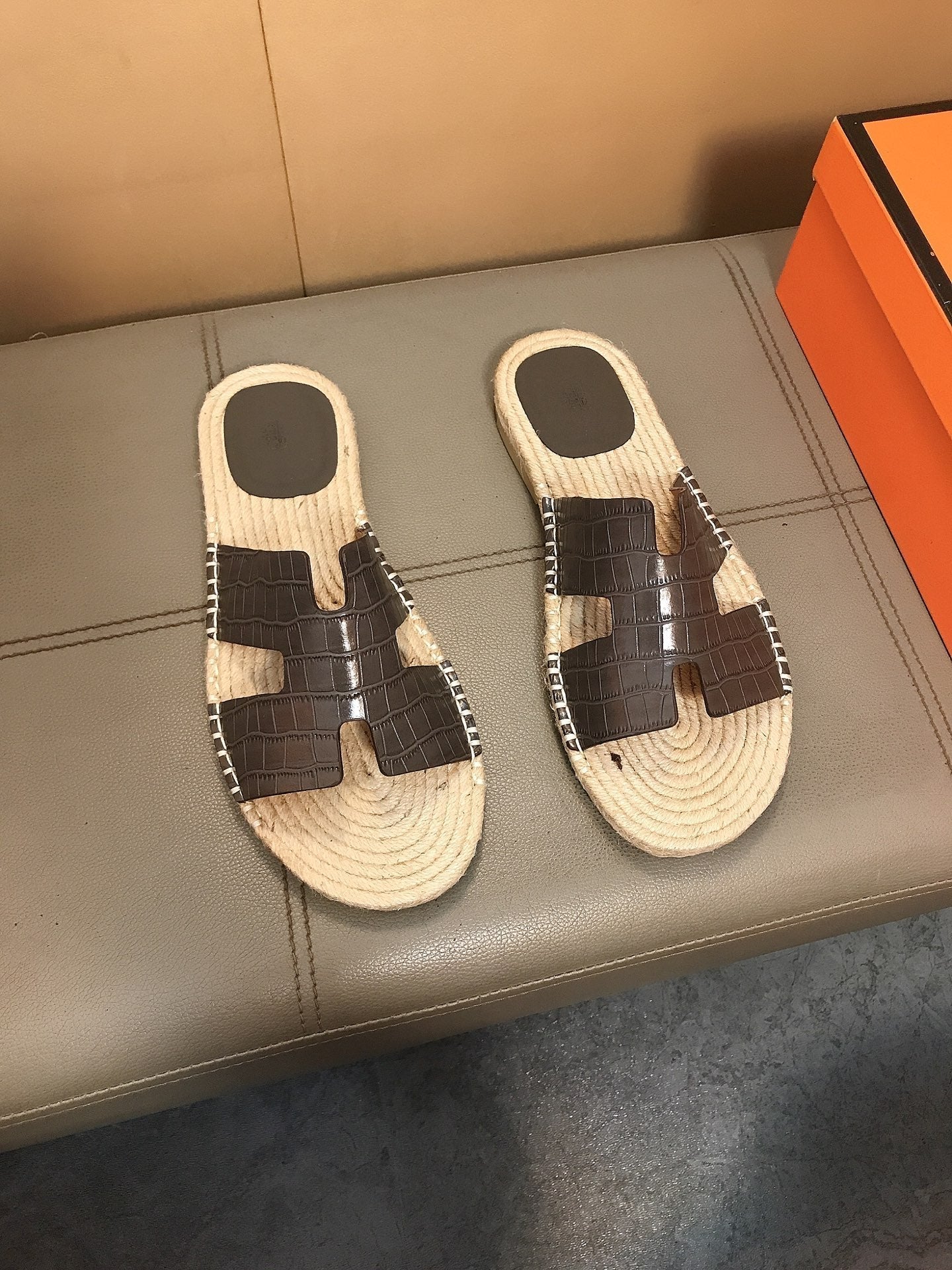 HM Men's Antigua Espadrille Dark Grey Embossed Cowhide 704136