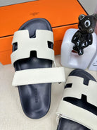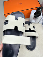 HM Men's Chypre Slide Black White Cowhide 540219