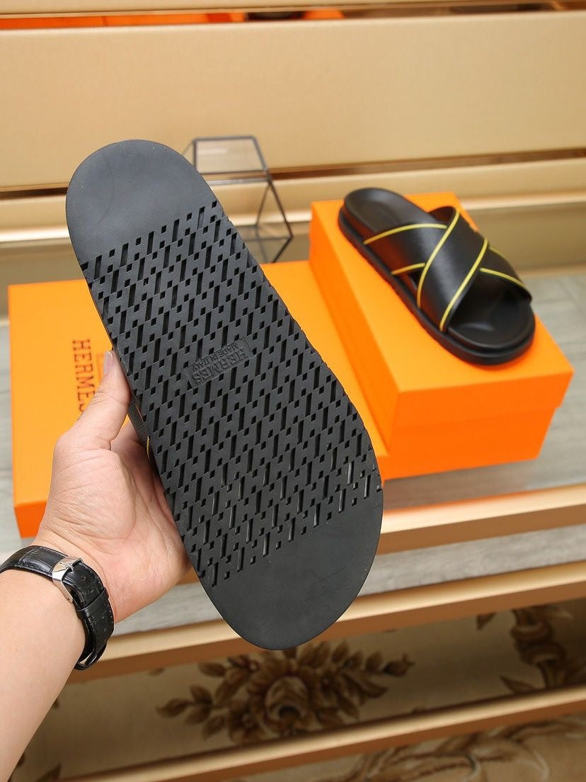 HM Men's Cross Strap Slide Black Cowhide 544100