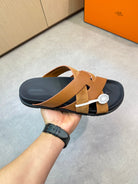 HM Men's Kazimir Slide Brown Calfskin Suede 603170