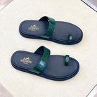 HM Men's Open-toe Sandals Green Rubber Sheepskin 561658