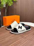 HM Men's Slide White Black Cowhide 684845