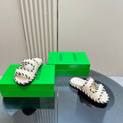 jack flat mule white black canvas lambskin