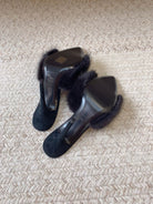 LA 16 HEELED MULES IN BLACK RABBIT FUR AND SMOOTH LAMBSKIN
