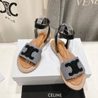 LYMPIA SANDAL IN TRIOMPHE MACCRAMÉ COTTON & CALFSKIN BLACK/NAVY