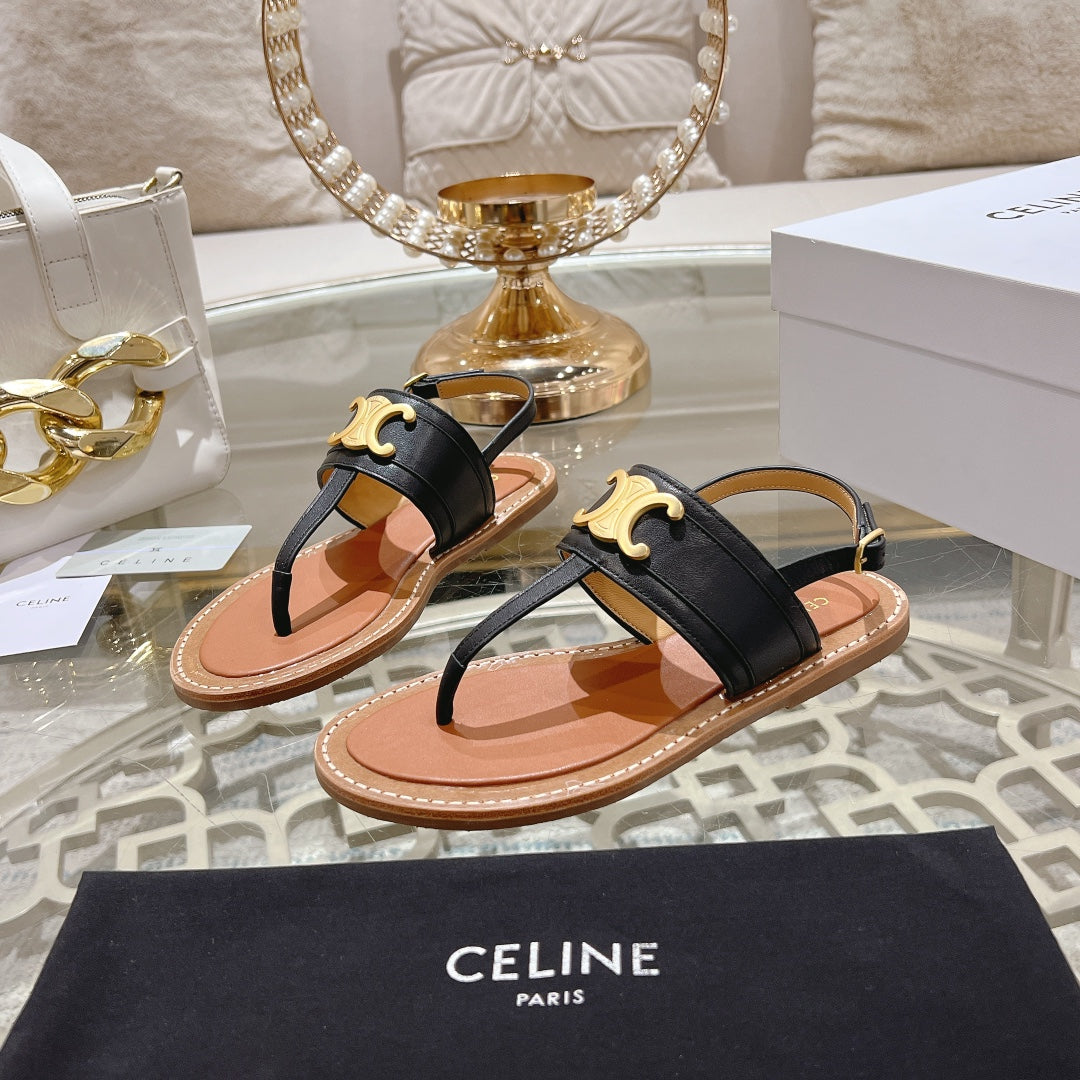 LYMPIA TRIOMPHE THONG IN CALFSKIN BLACK/BROWN