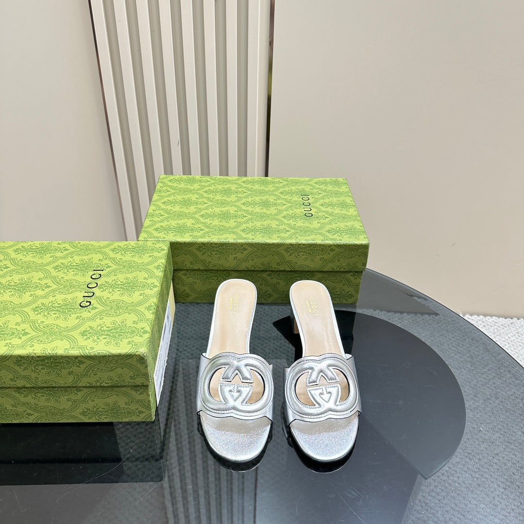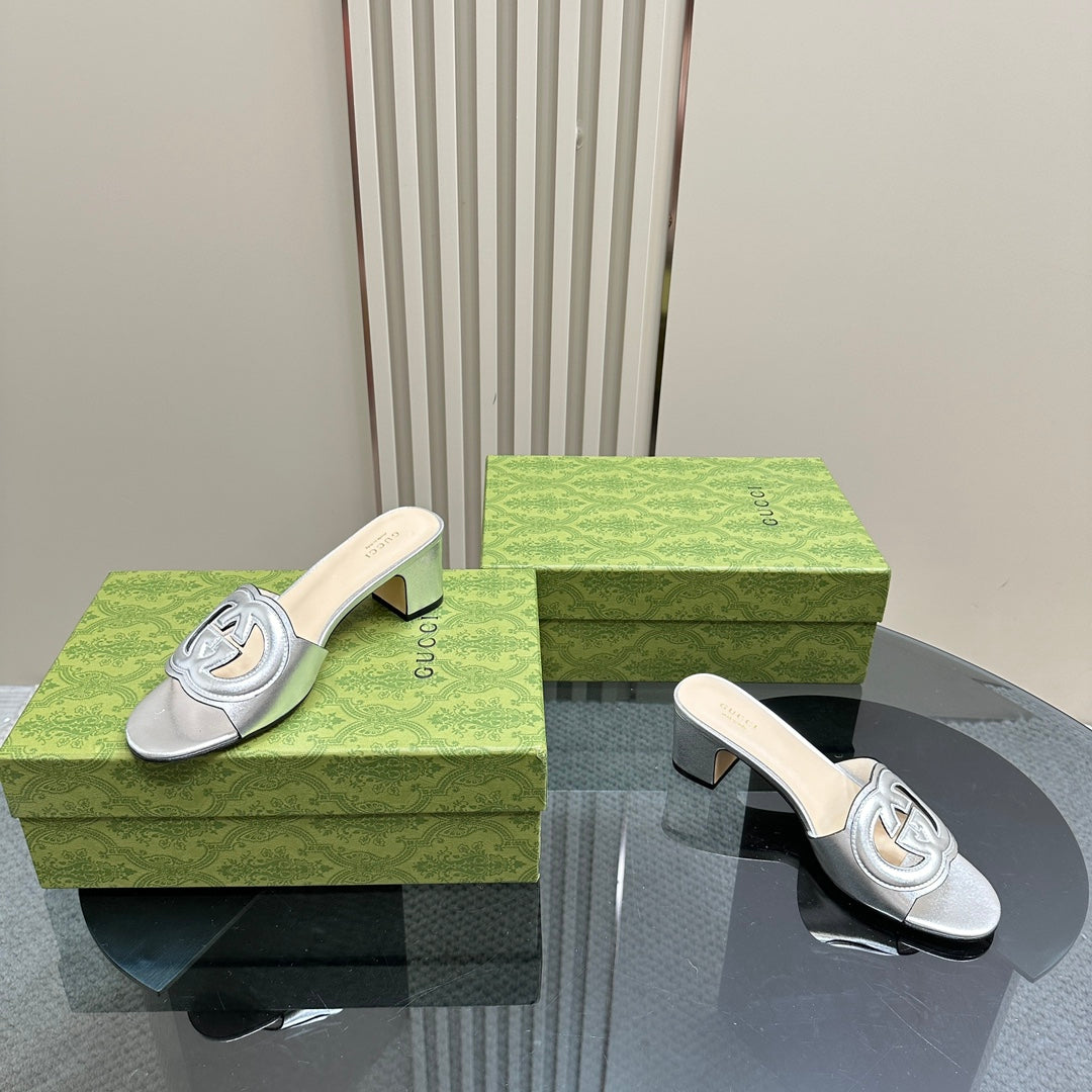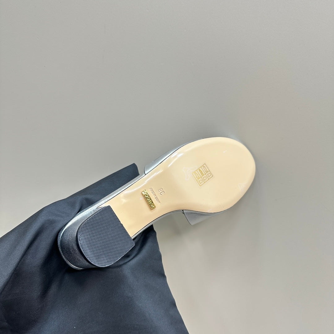 MID-HEEL 5 CM MULE IN SILVER CALFSKIN