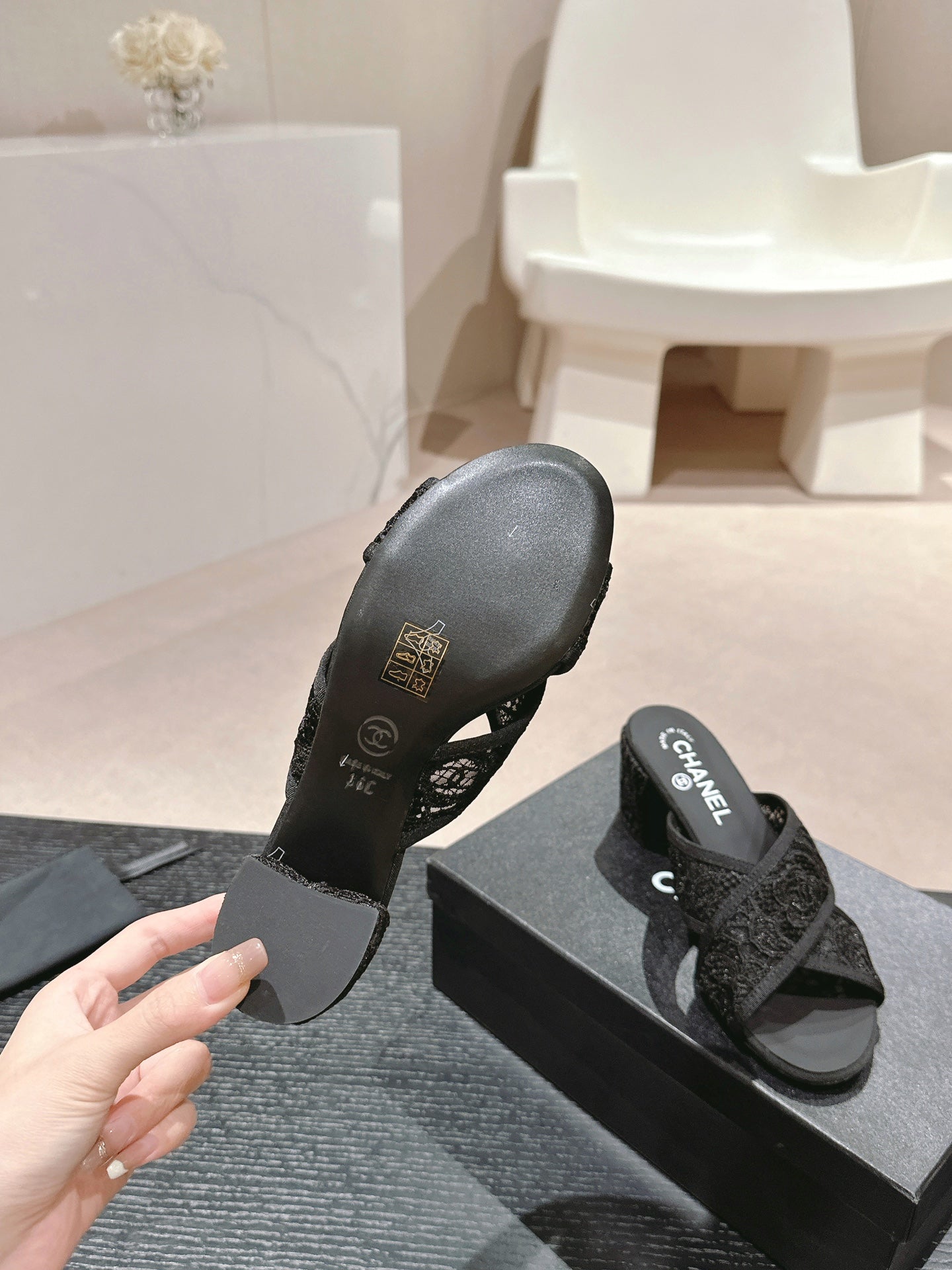 mule sandal 60 cross black lace fabric