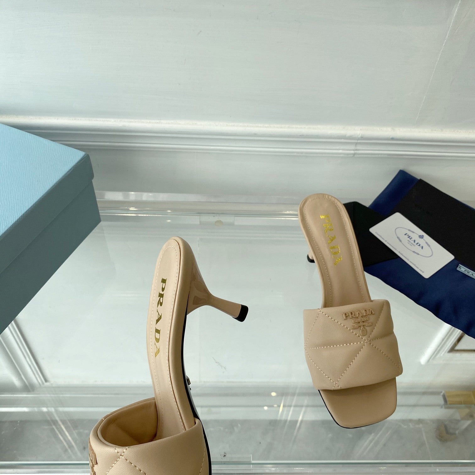 PRA QUILTED HIGH HEELS SANDALS 65 BEIGE LAMBSKIN