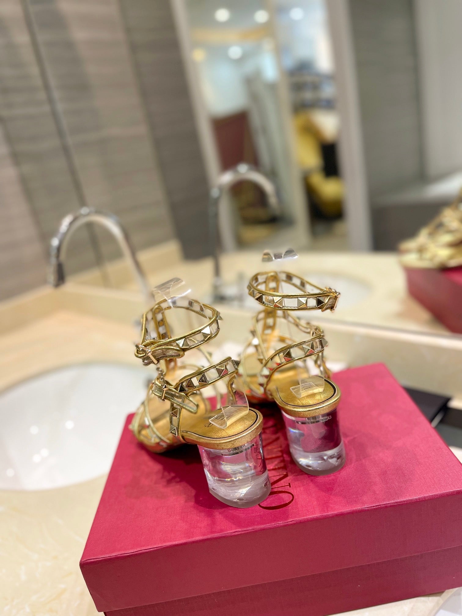 ROCKSTUD SANDAL WITH STRAP IN GOLD CALFSKIN 60 MM