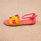 - Material: Sandal in calfskin with straight cut edges, "H" cut-out detail and thin ankle strap.