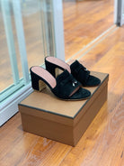 Summer Charms Mules 80 Black Suede Pink Lambskin