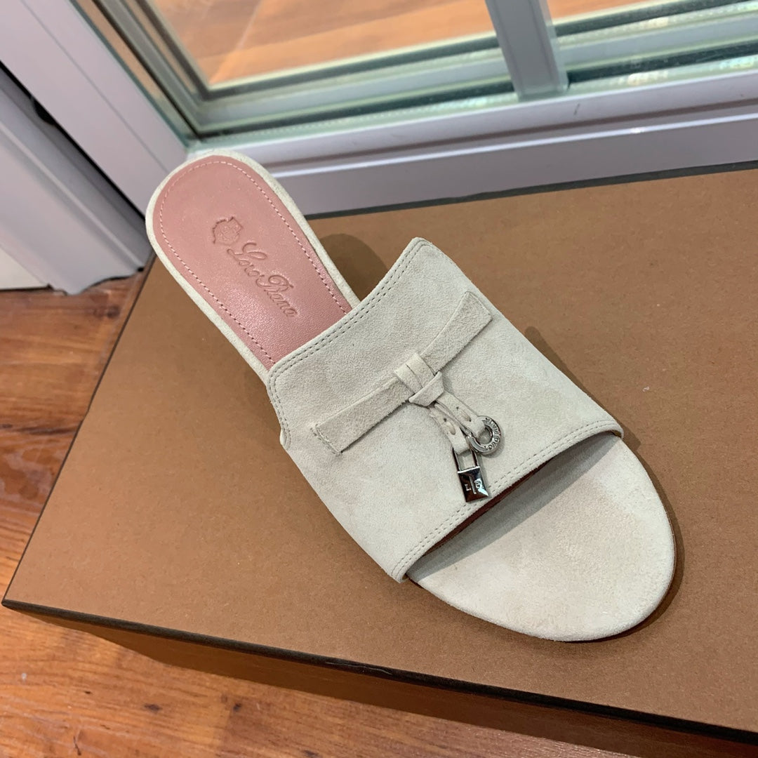 Summer Charms Mules 80 Earthy Gray Suede Pink Lambskin