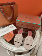 Summer Charms Sandals in Taupe Suede Maroon Lambskin